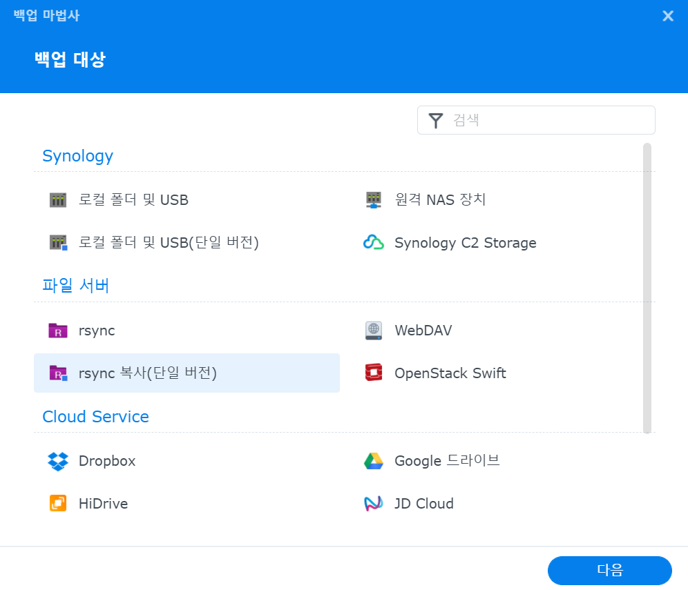이번에 처음 들어보는 rsync인데 원격으로 데이터 백업을 위한 프로토콜 같더라구요. 혹시나 되나 시도해보기로 합니다. 하이퍼백업을 보니 rsync 그냥이 있고 단일 버전이 있는데 rsync만 있는 것은 증분 백업으로 위에 1차로 실패한 결과랑 동일하고 단일 버전은 1:1 미러링으로 백업하는 것으로 제가 원하는 결과물을 얻을 수 있을 듯합니다.