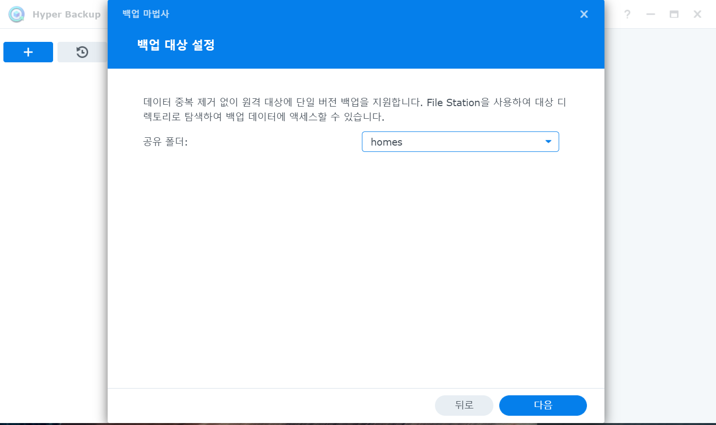 기존 나스에 하이퍼백업을 설치하고 원격 NAS 장치를 선택합니다.