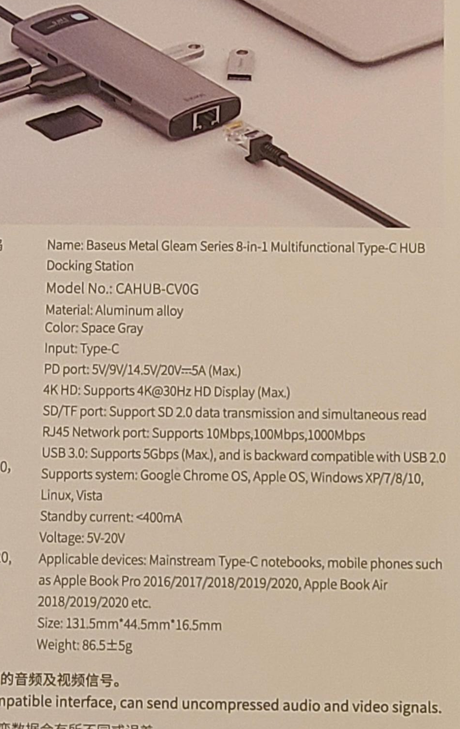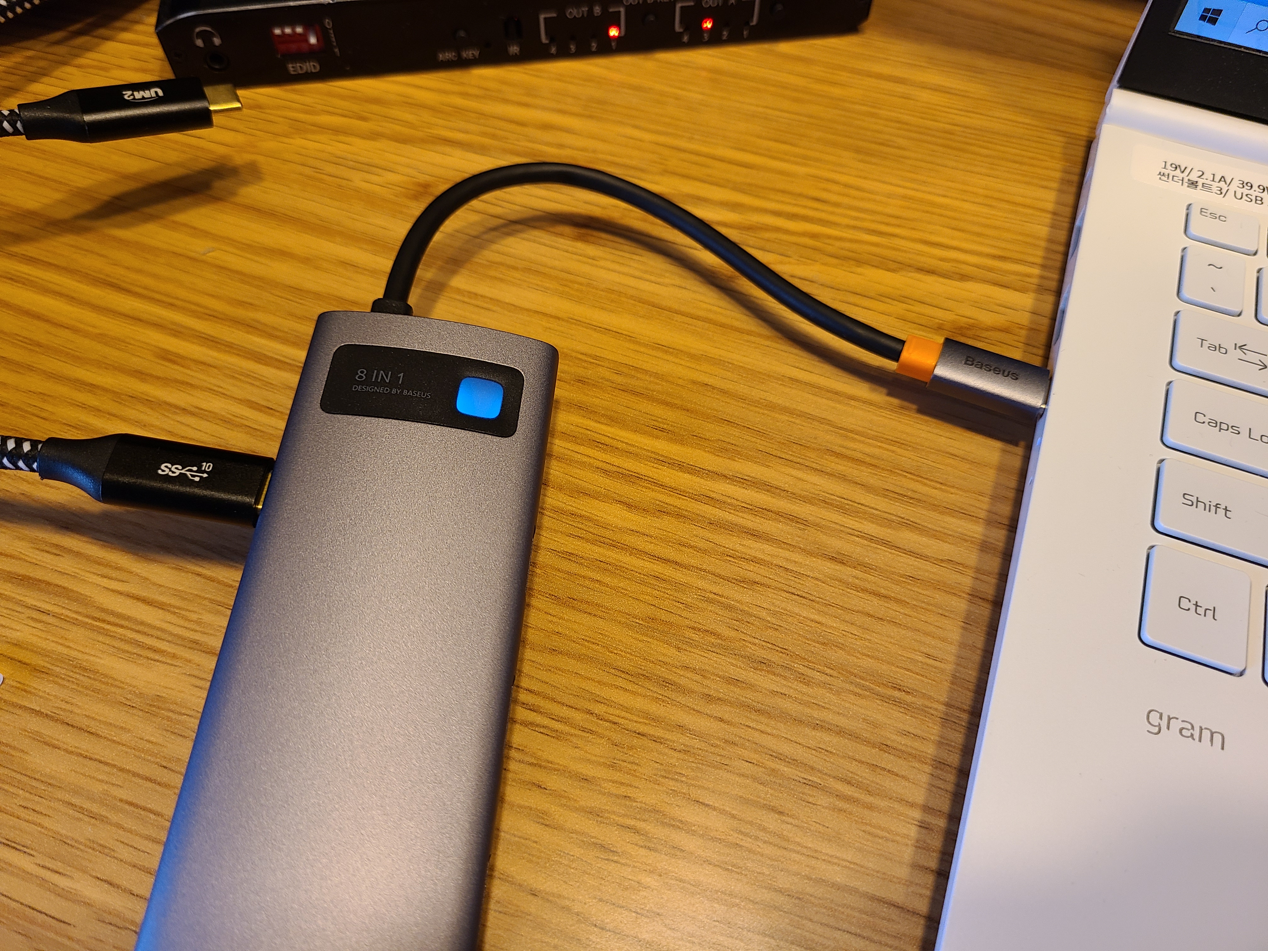 그러다가 찾은게 8 in 1 제품인데 USB C PD충전을 포함해서 총 8개의 포트를 가지고 있는 제품입니다. 물론 USB의 대역폭이 있으니 여기에 꽂힌 모든 제품을 쾌적하게 이용하기는 힘들겠지만 그래도 필요할 때 두어 개 꽂아 쓰긴 좋을 듯하네요.