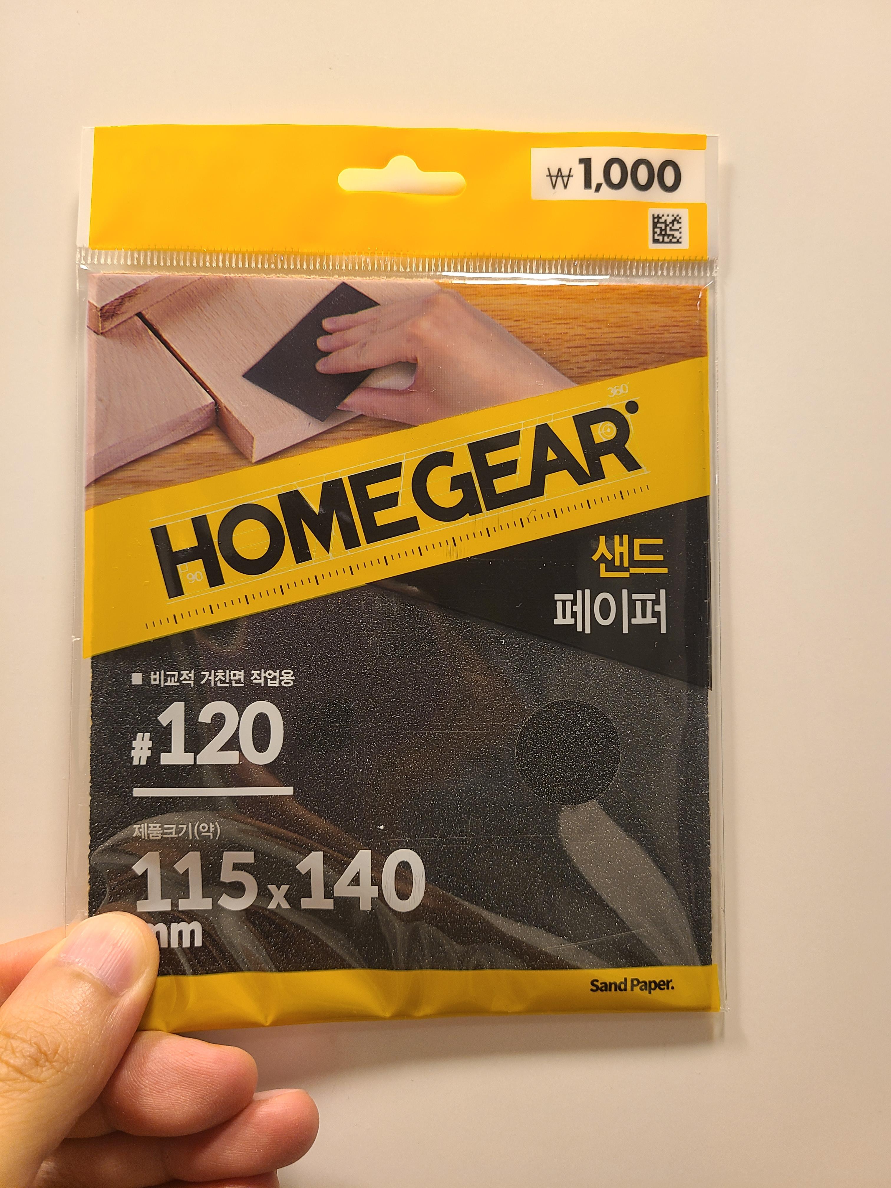 남은 20mm에 검은색 기둥을 꽂을 수 있도록 두께를 얇게 해줘야 해요. 다이소 갔을 때 같이 구입한 사포로 아주 열심히 갈았어요. 기둥 안에 전선도 있고 기둥도 둥글둥글해서 작업성은 아주 안 좋지만.... 어쩌겠어요 일은 이미 저질렀는걸요 ㅋㅋ