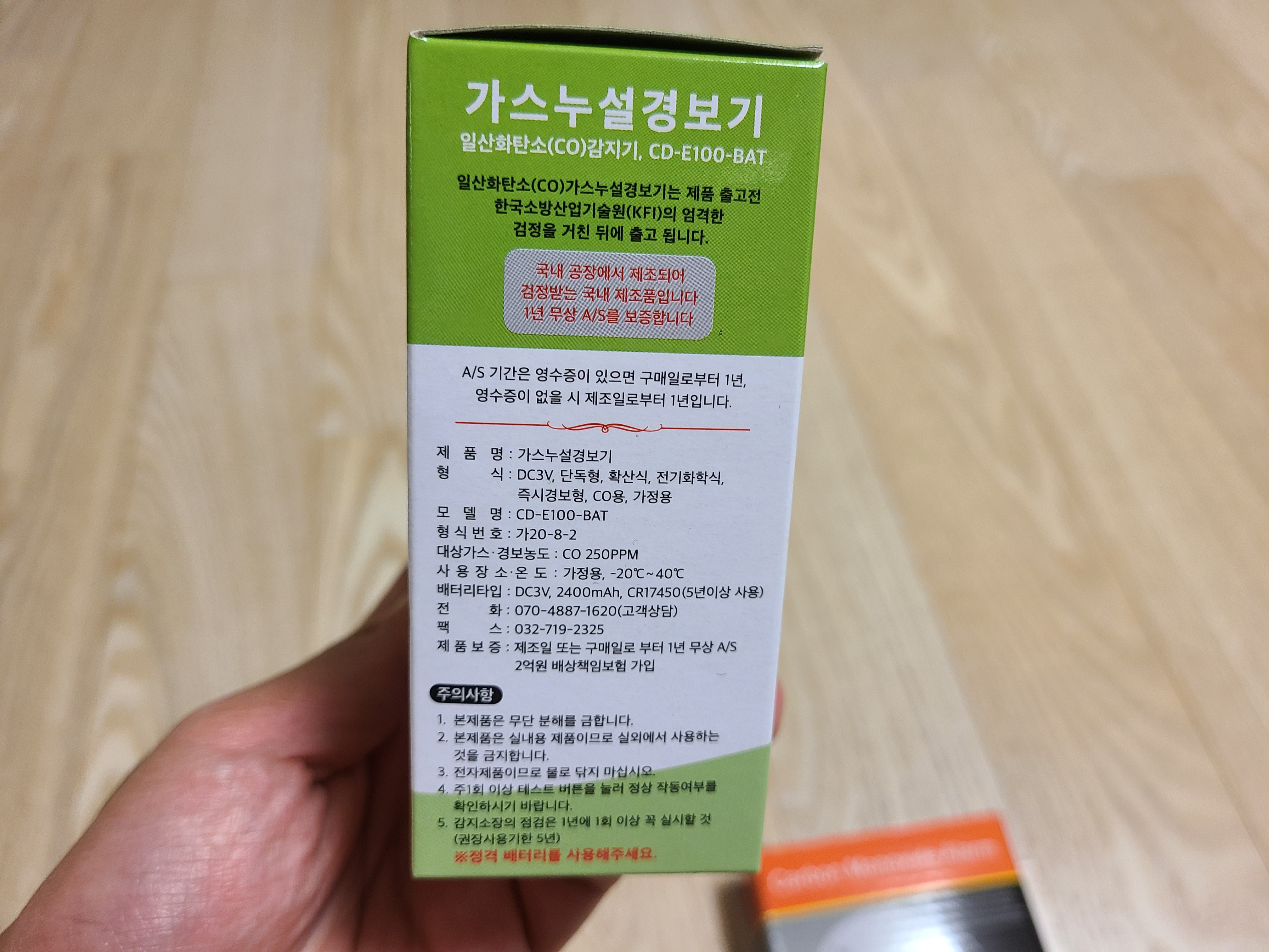 그리고 일산화탄소 감지기 제품별로 감지 범위가 다르기 때문에 혹시나 하니웰 센서가 못 잡는 가스를 잡기 위해 다른 제품도 하나 더 구매했어요. 요건 네이버에서 가장 저렴이로 구매했는데 유튜브 영상을 보니 성능도 괜찮은 거 같더군요. 종종 이 저렴이 제품 두 개만 들고 가시는 분들도 계시는데 어차피 안전을 위해서 두개 구매하신 거라면 이왕이면 하나는 다른 제조사 제품으로 쓰는 걸 추천드려요!