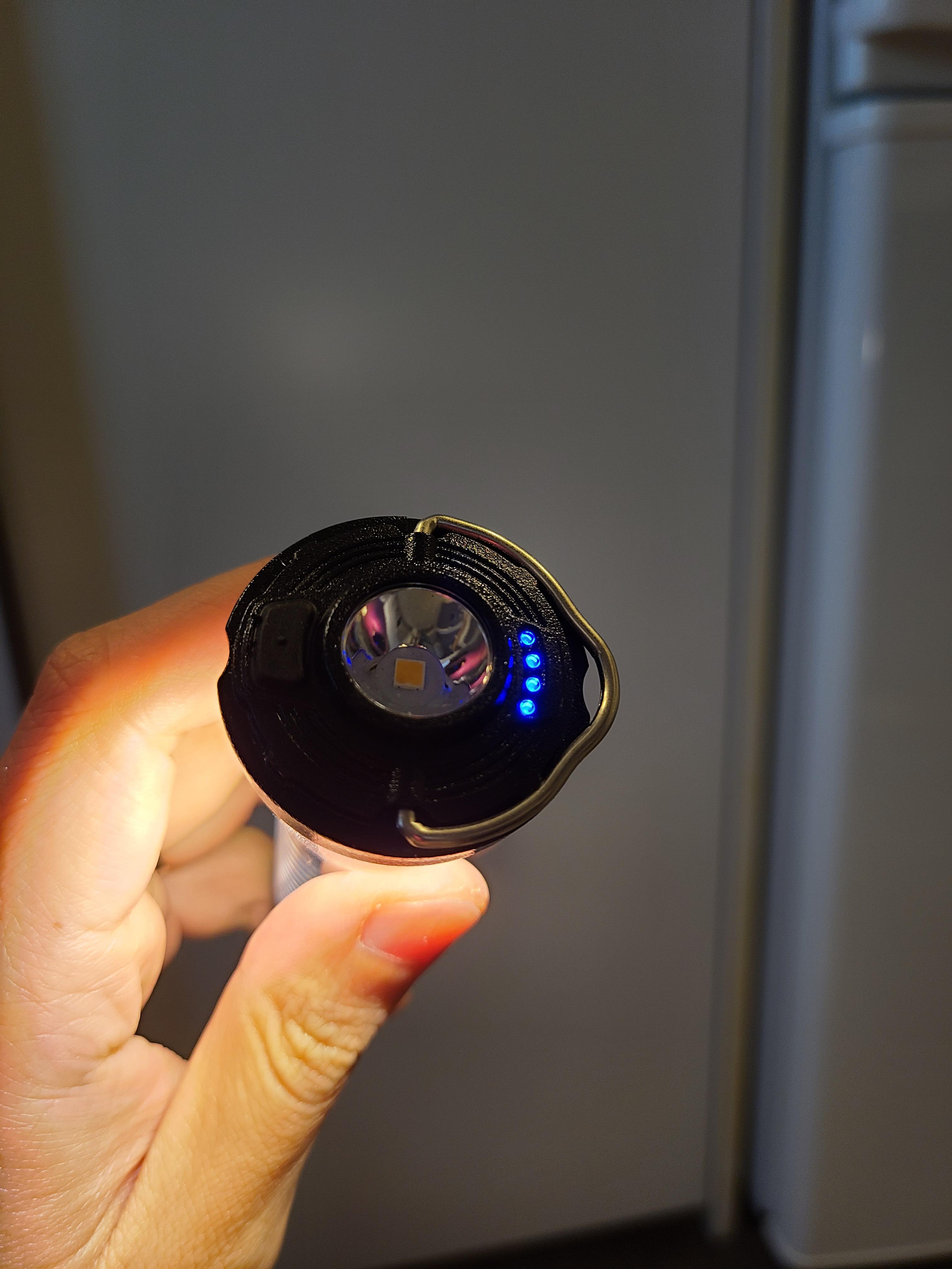 모드 변경 외에 밝기조절이 가능해요. 원하는 모드일 때 전원버튼에 손을 떼지 않고 계속 누르고 있으면 불빛이 점점 약해지는 것을 볼 수가 있어요. 딱 원하는 밝기로 조절하지는 못하지만 그래도 이런 기능이 있으면 유용하게 쓸 수 있죠! 아마 저는 항상 풀파워로 쓰지 않을까 싶어요 ㅋㅋ