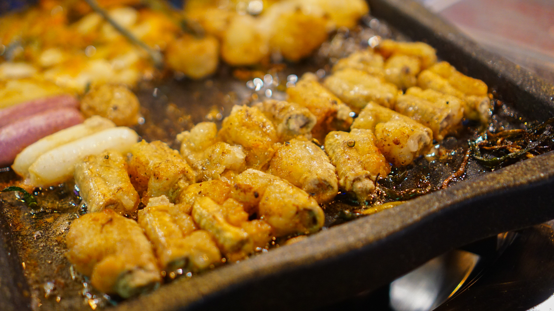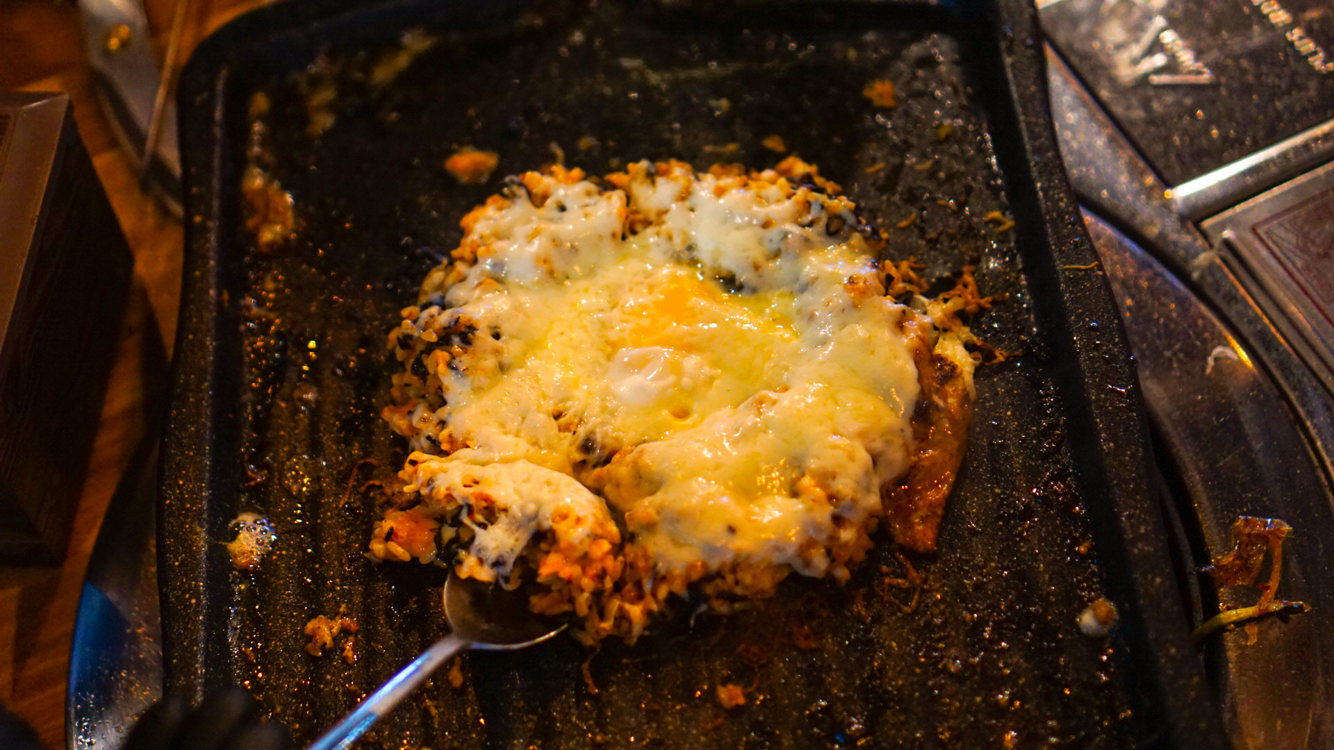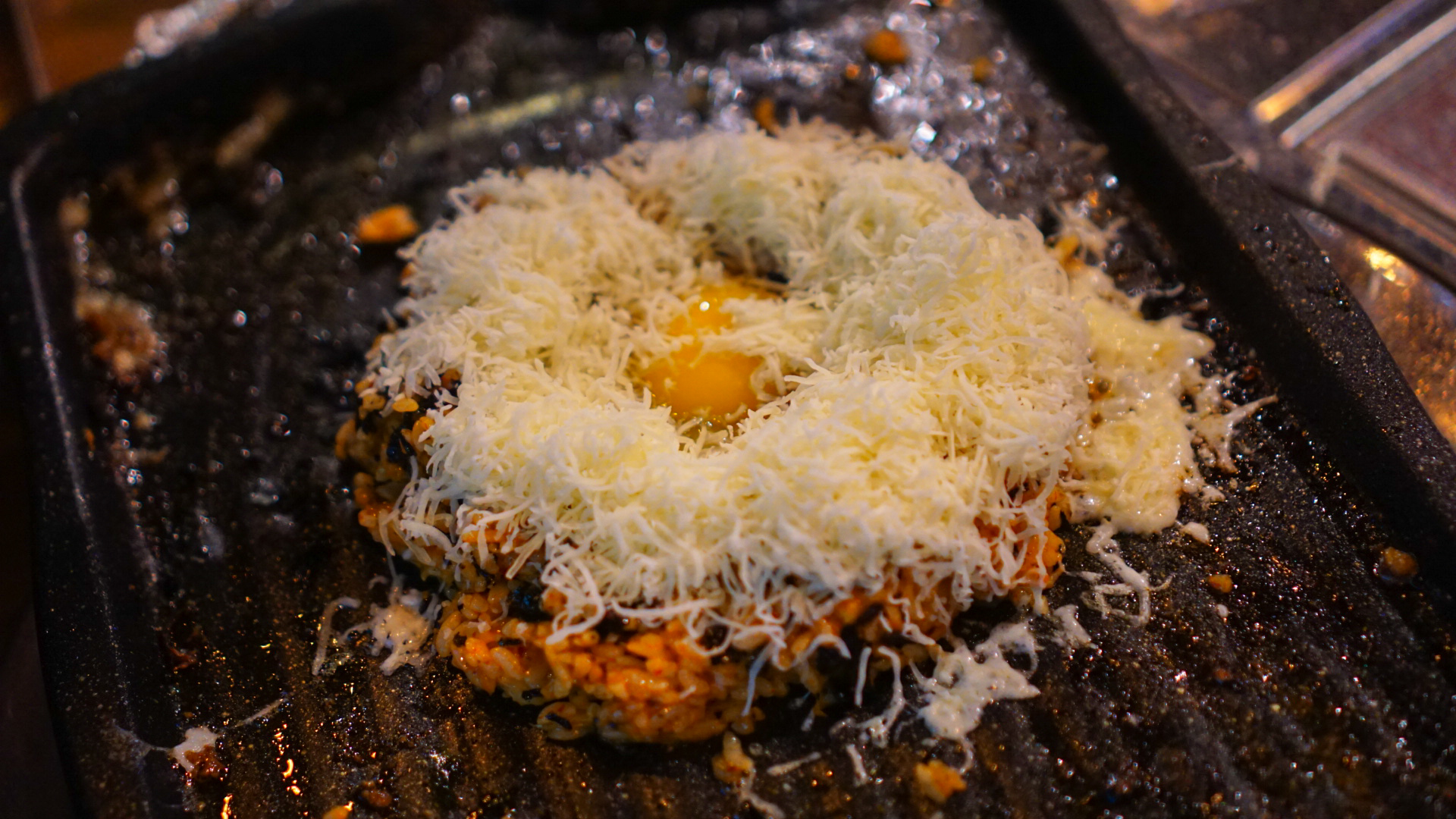 부엌에서 사장님이 볶음밥을 만들어오셨고 저희 불판에서 치즈와 계란만 올려주는 방식이네요. 사장님이 치즈를 올려주시는데.. 뭐 이래도 되나 싶을 정도로 쌓아 올려주시네요.진짜 많다고 리액션 크게 하니까 사장님이 제대로 된 맛을 위해 재료는 팍팍 쓰신다고 하네요.