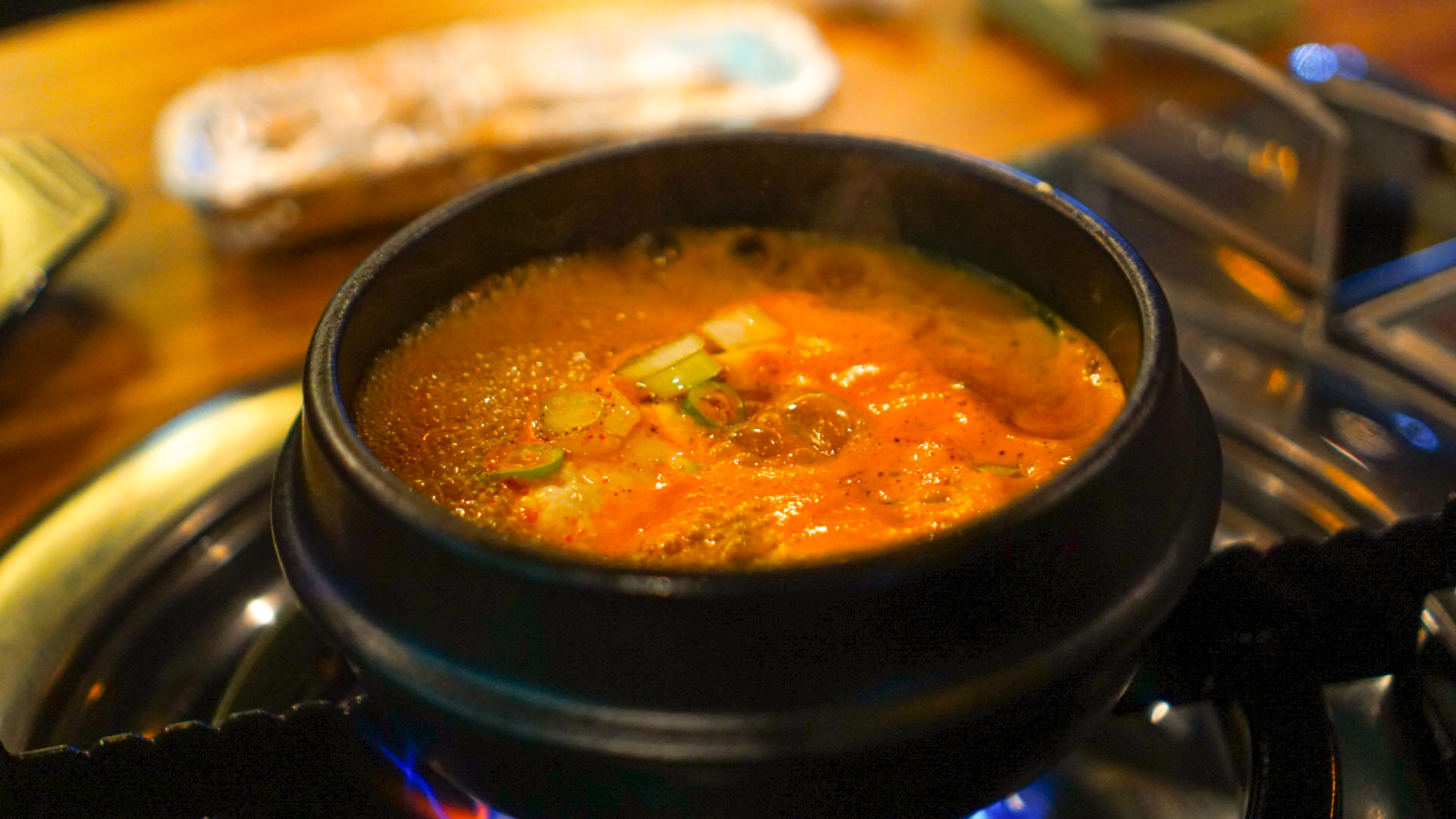 주문이 들어가고 바로 순두부찌개가 나왔어요. 곱창집가면 순두부찌개 나오는 곳은 어렵지 않게 볼 수 있는데요, 아니 글쎄 순두부찌개가 이렇게 맛있어도 되나? 싶더라구요. 곱창나오기전에 허기달래는용(?) 혹은 따뜻한 국물이라도 마셔라고 형식적으로 나오는 순두부찌개와는 급이 달랐어요. 찌개 끓으면 계란 넣어라고 하나 주시는데 이런 게 소소한 감동이죠. 학교 앞 식당에서 밥먹고 나올 때 요구르트 하나 주면 거기 단골 되잖아요.약간 그런 느낌 받았어요 ㅋㅋㅋ
