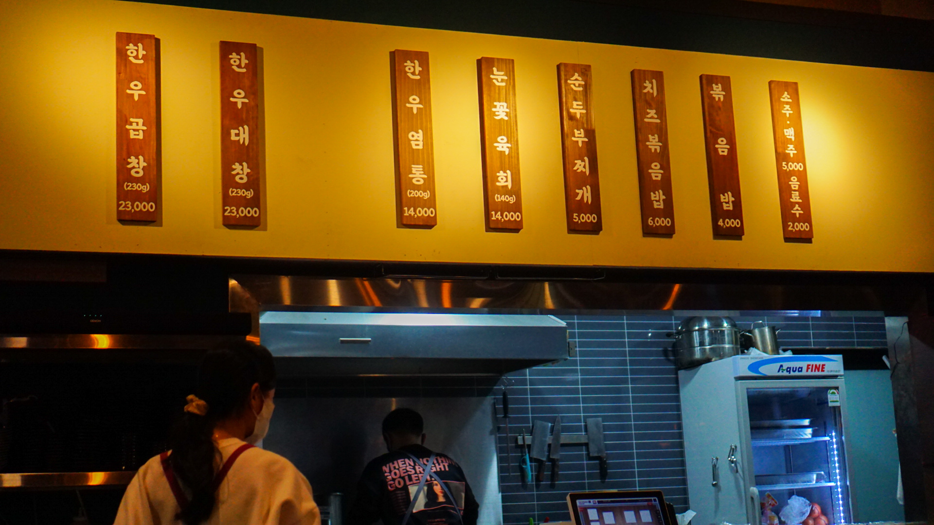 매뉴판을 보니 아직 듬성듬성 붙여있더라구요. 아마 여기 사장님은 추가메뉴에 대한 고민을 하고 있을 거라고 생각돼요. 우리 커플은 고민도 하지않고 늘 먹는 곱창과 대창을 주문했습니다.