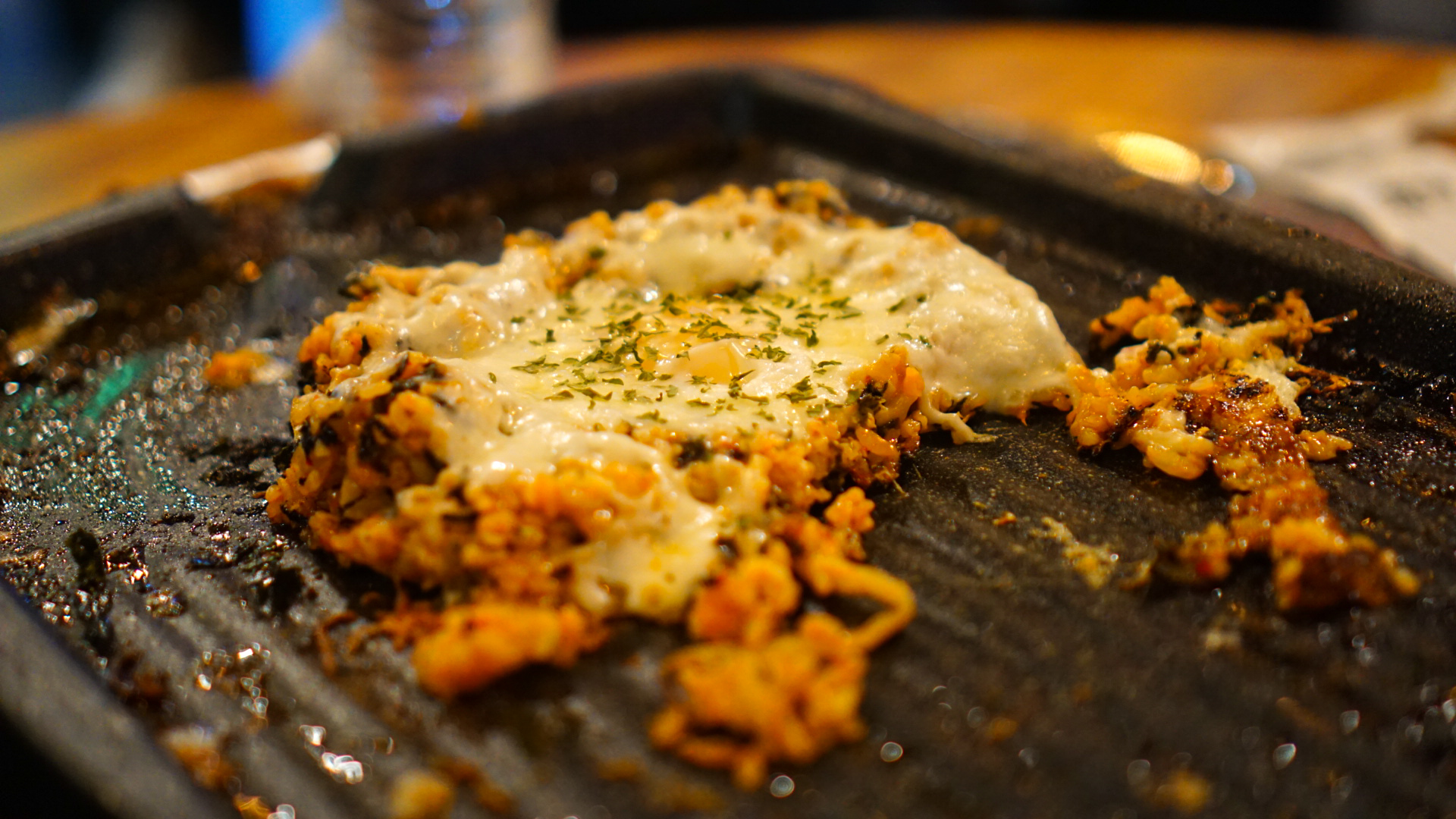 치즈 볶음밥 가격은 6천원. 무슨 볶음밥이 6천원이나해 하는 생각도 잠시 치즈 토핑이 일반적으로 2천원하니까.. 빠르게 수긍. 그래도 비싸!! 자극적인 음식을 좋아하는 저는 볶음밥이 조금 심심하다고 느꼈지만 애인은 오히려 너무 좋았다고 하네요. 심심한 맛이지만 바닥까지 싹싹 긁어 다 먹었었어요 ㅋㅋ