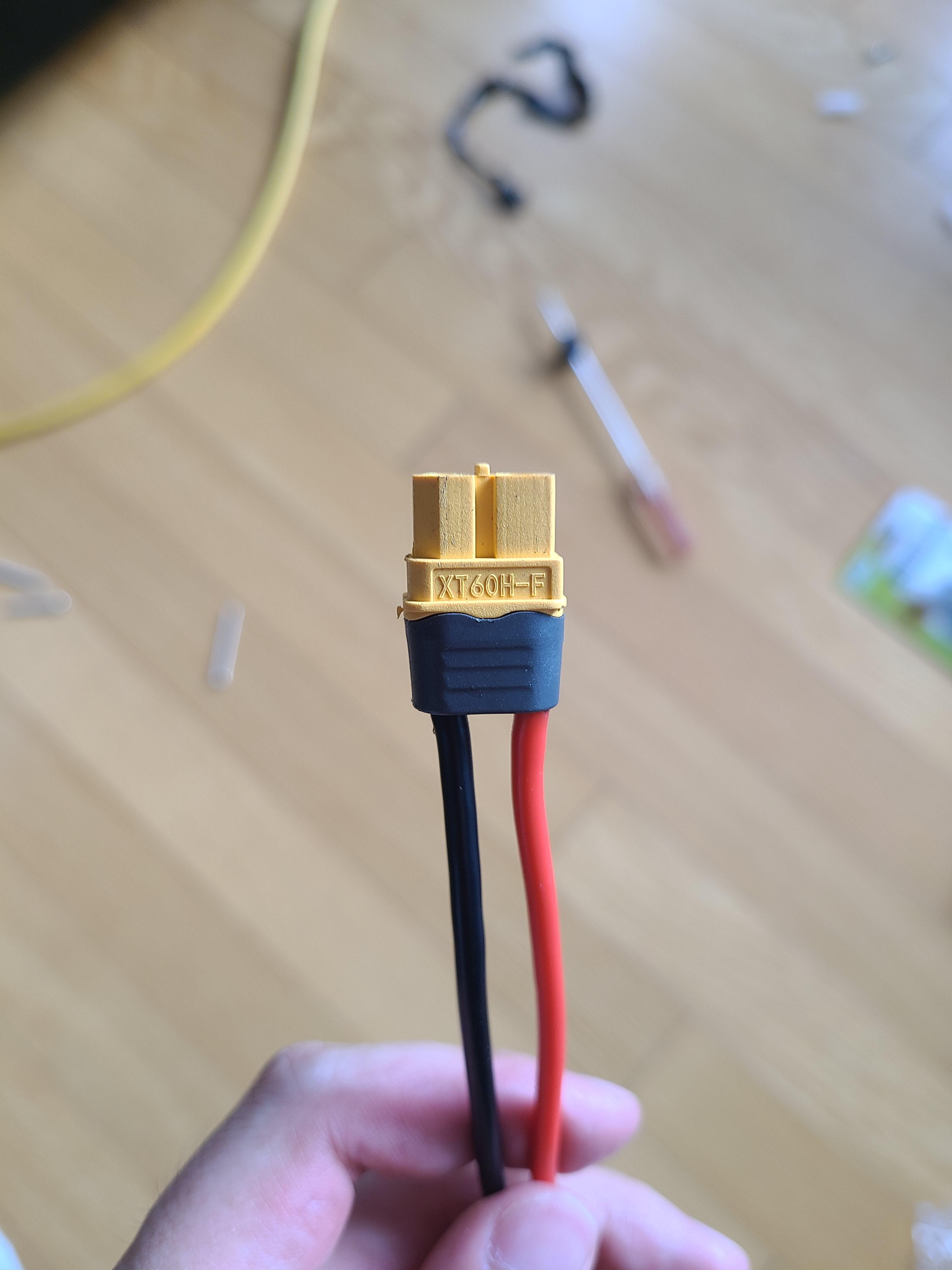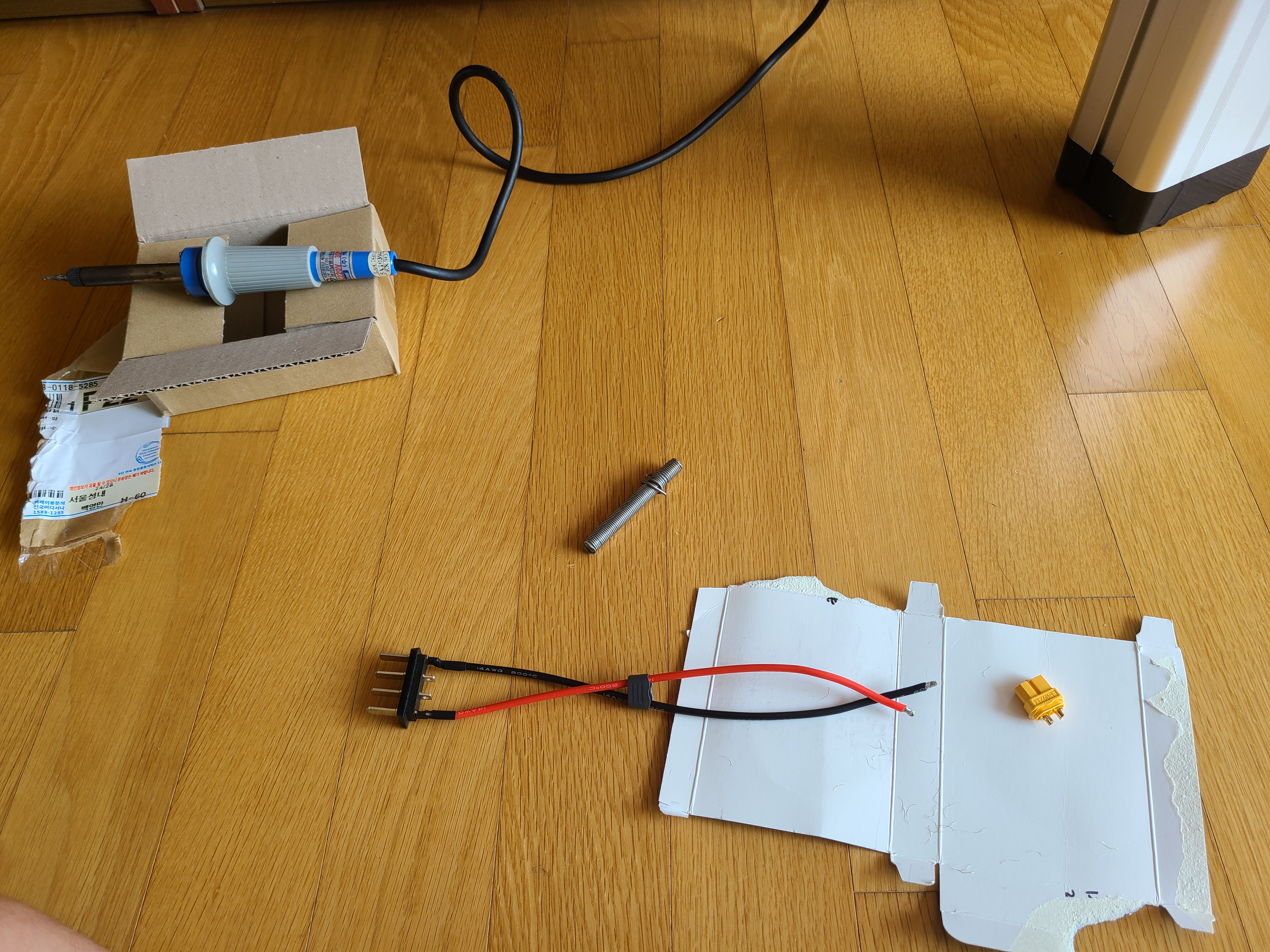 배터리에서 나오는 전선 끝에다가 커넥터 납땜합니다