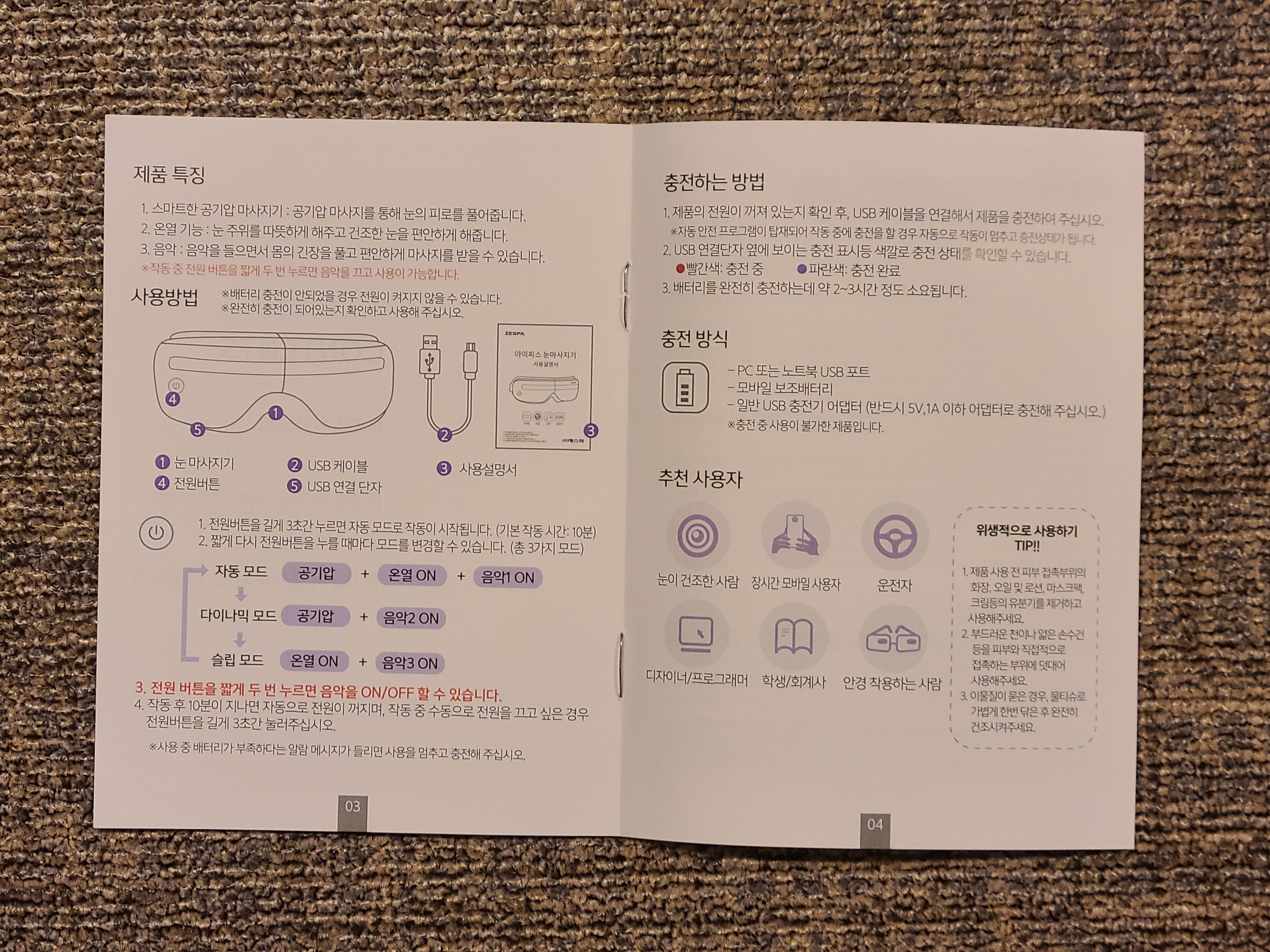 박스를 열면 설명서와 비닐에 싸인 마사지기가 나와요
