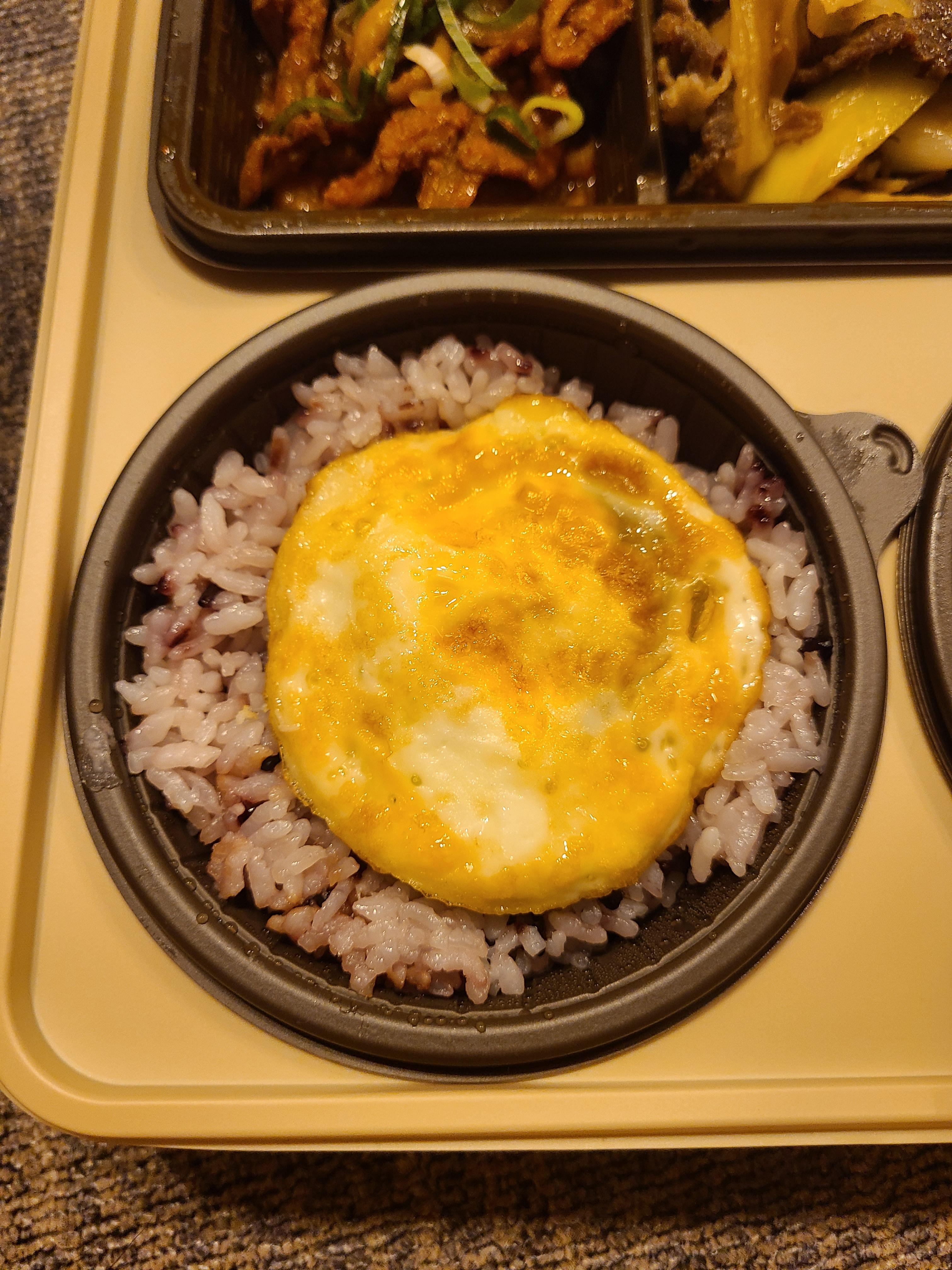 이렇게 밥위에 계란 올리고 고기까지 함께 먹으니