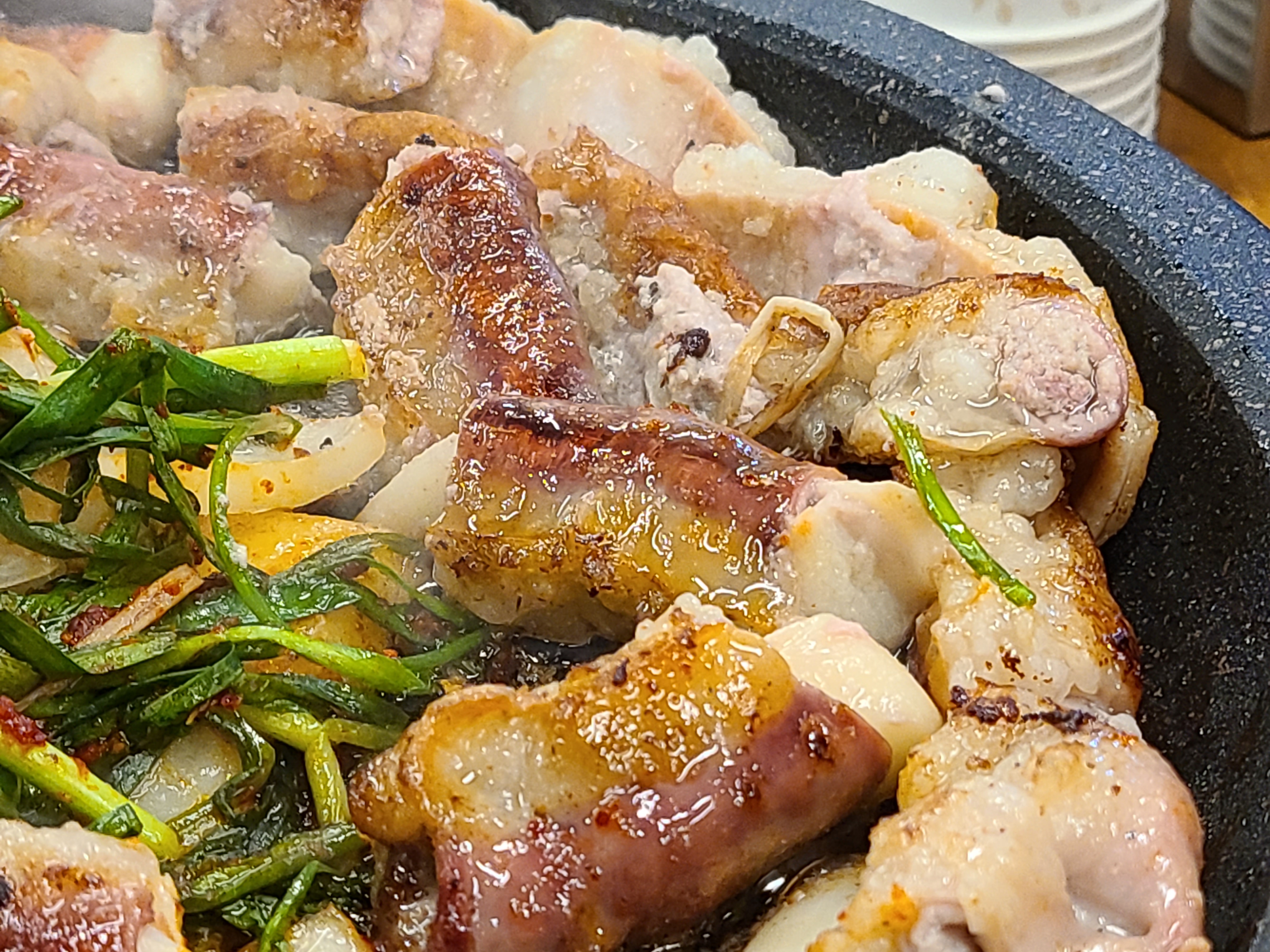 노릇노릇한게 냄새도 좋고 맛도 너무 좋았어요 그동안 곱창집에서 사먹은 곱창중에 여기가 2등이네요 1등은 양재곱창집이었는데 진짜 손가락길이만 한게 25000원이어서 많이 못먹고 왓엇죠 근데 맛은 대박