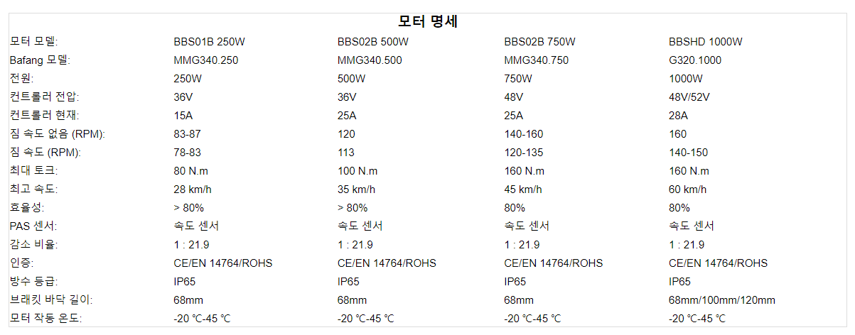 저는 센터드라이브 모터 중 가장 작은 250w급을 구매하여 장착했습니다 국내에서는 이 스펙은 팔지도 않는거 같은데요 제 기준으로는 250w정도면 충분히 마실용으로 사용가능하다고 생각합니다 물론 MTB 목적이면 더 큰 모터 사셔야하구요 제 몸무게 75kg 기준으로 최대속도 28km/h까지 나왔습니다 저는 오버스펙이라 생각하며 충분히 만족합니다