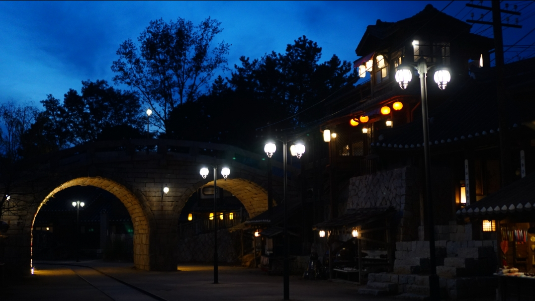위의 순서대로 수정한 사진과 원본을 비교해보겠습니다 전반적으로 사진이 밝아졌지만 오히려 밝은 부분은 밝기를 낮춰서 가로등의 무늬가 더 선명하게 보입니다 다리 뒤에 비탈길 있다는 것도 알게 되었고 건물들도 보이네요 화이트밸런스를 누렇게 조절했기 때문에 사진이 좀 더 따뜻한 느낌이 들게 했습니다 보정의 최초 목적은 '사진을 밝게' 하는 것이었고 충분히 만족스러운 결과를 얻었습니다