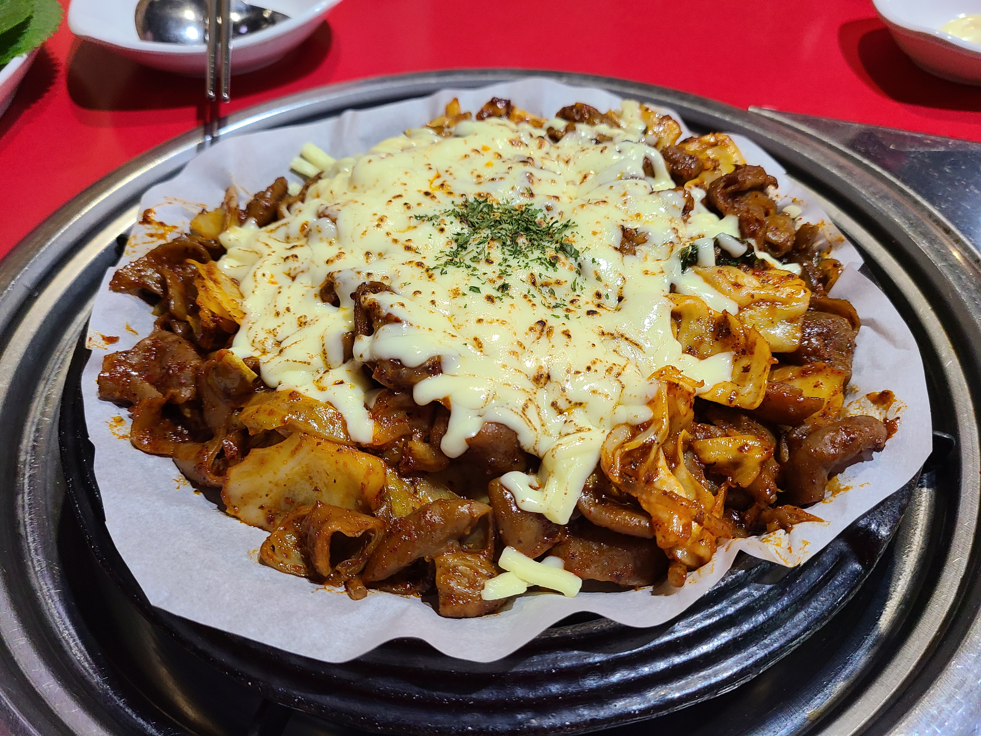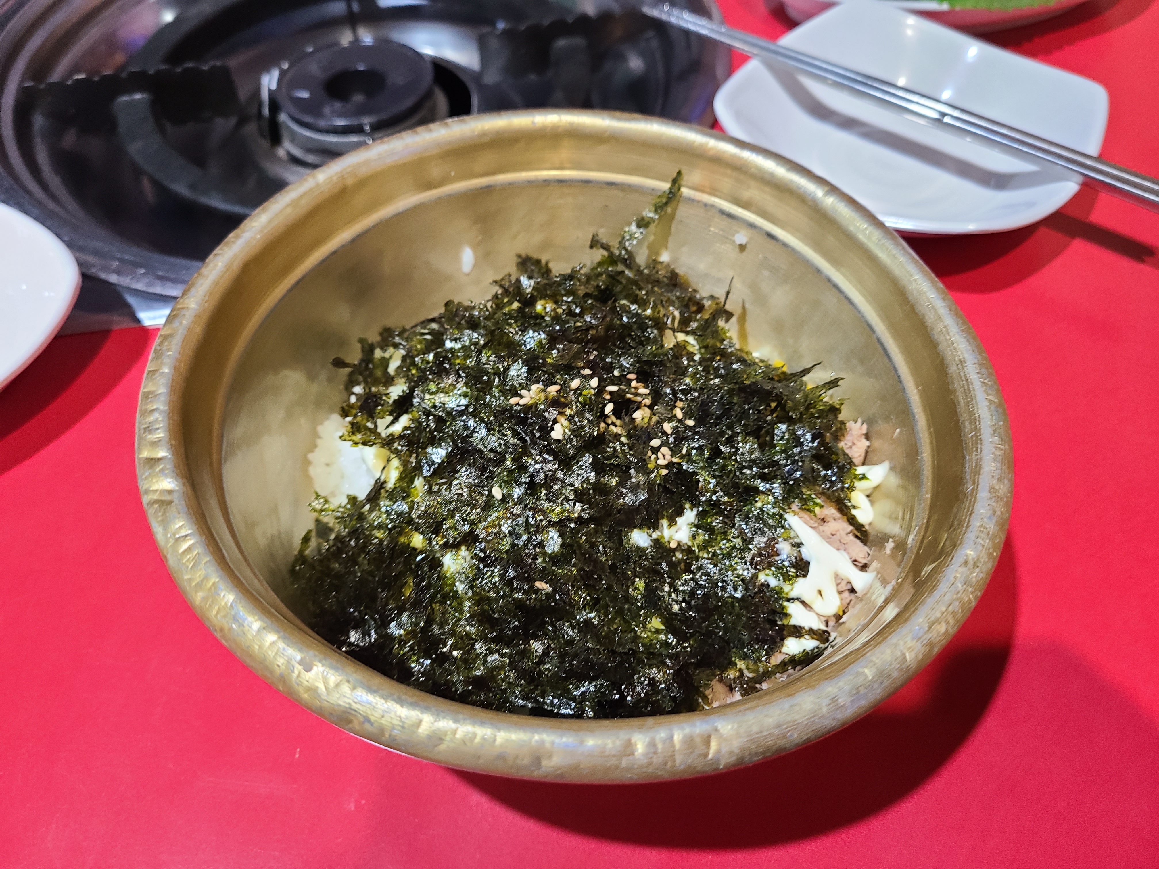 이윽고 치즈 곱창과 계란찜이 나왔습니다. 첫인상은 '맛있어 보이는데 양이 적네' 였습니다. 사진은 크게 나와 보이지만 옆에 계란찜 뚝배기랑 곱창 그릇 비교해보면 생각보다 작다는 것을 알 수 있습니다. 하지만 요게 보기와 다르게 양이 꽤 되더라구요. 물론 앞서 먹은 참치마요도 한몫을 했습니다. 참치마요 주먹밥과 돼지곱창의 조합이 진짜 상당하더라구요. 거기에 쌈싸먹으라고 셀프바가 있는데 특이하게 상추는 없고 깻잎만 있습니다. (난 상추파인데..) 조금 아쉽긴 하지만 깻잎에 싸먹어도 아주 맛있었어요. 정신없이 먹다보니 사진도 제대로 못찍었네요 ㅋㅋㅋ 다 먹고 볶음밥 비비는 것이 국룰이거늘 너무 배불러서 볶음밥은 시도조차 못했습니다. (그만큼 양이 많았다는 거겠죠?) 매우 만족스러운 한 끼를 먹고 배 두들기며 집에 돌아왔습니다. 오늘은 일찍 자야겠어요. 다이어트는 내일부터니까요.