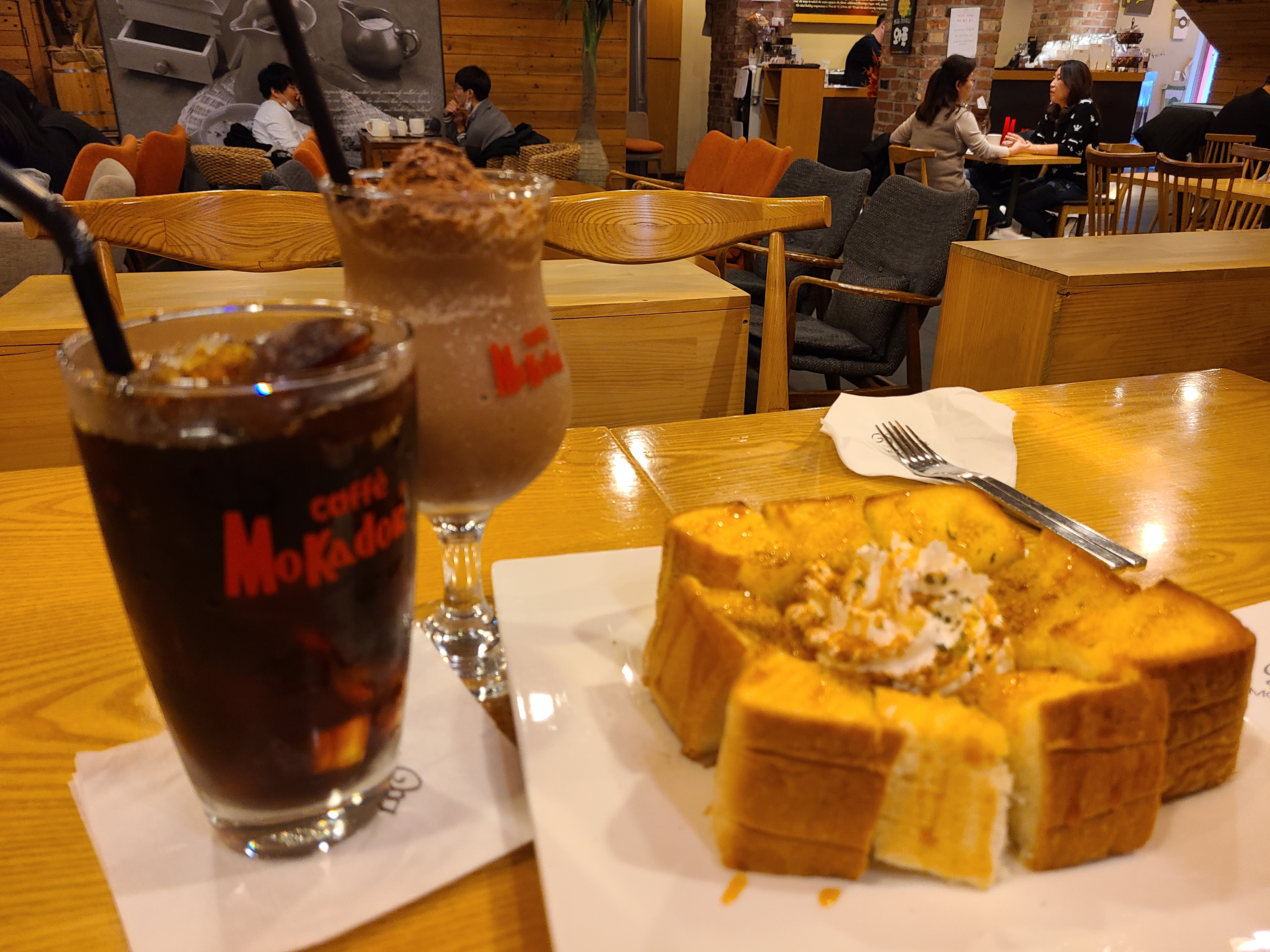 전에는 의정부 많이 왔었는데 요즘은 뜸해서 되게 오랜만에 카페 모카도르에 갔어요. 의정부역 앞에는 스타벅스를 포함해서 대부분의 커피 브랜드가 다 있긴 한데 저는 꼭 여기만 오고 있습니다. 공간도 아늑하고 음료도 맛있어요. 다른 카페와 가장 큰 차이점이라면 주문은 제 테이블에서 직원분 불러서 주문합니다. 그러면 음료도 제 테이블로 가져다 주세요. 직원분들은 번거로우시겠지만 이거 하나로도 뭔가 되게 대접받는 기분이 들어서 참 좋아합니다.