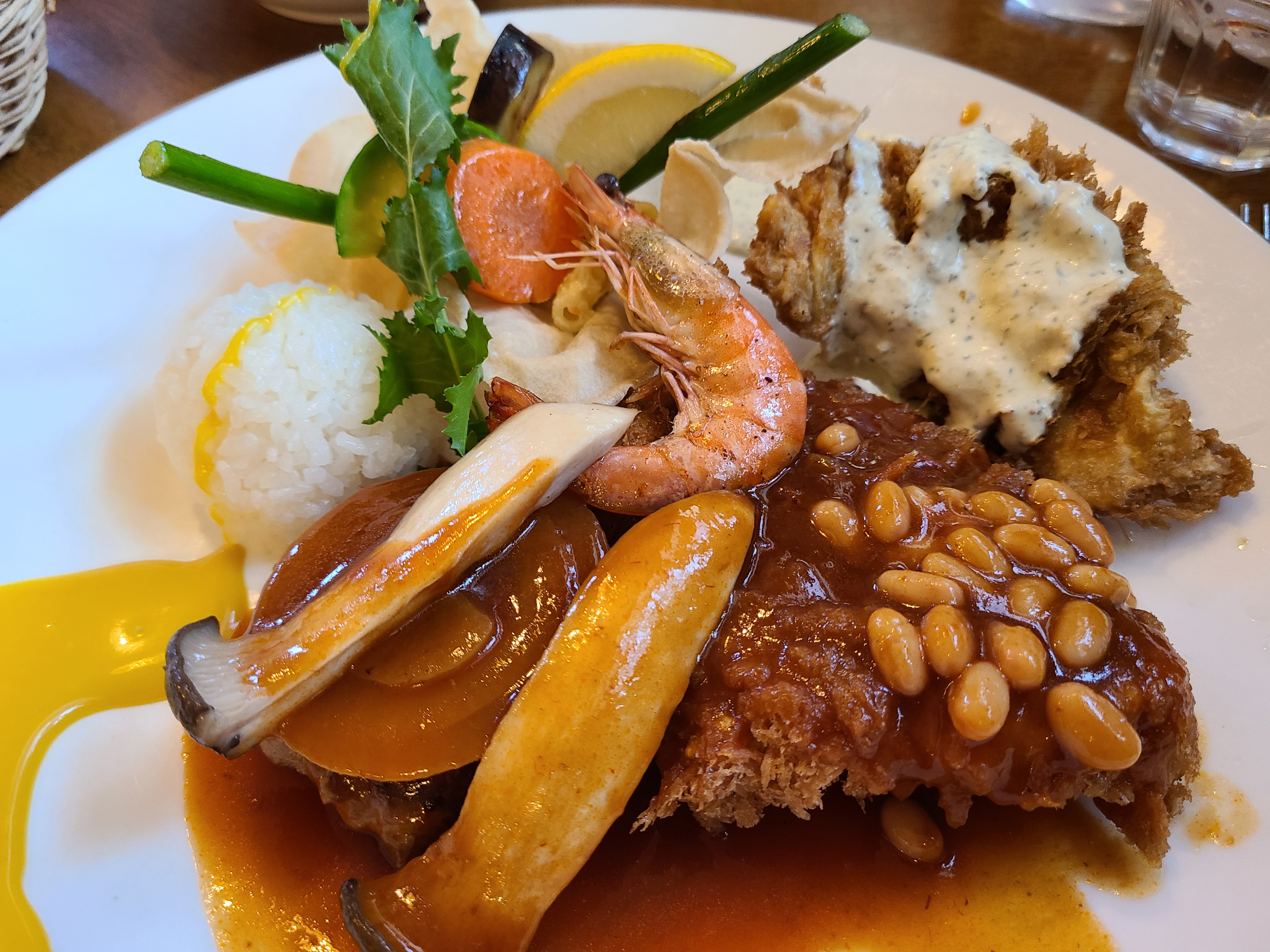 돈까스, 생선까스, 함박스테이크가 이쁘게 담겨져왔네요. 보는 것만으로도 맛있고 배부른 느낌이 들었는데 실제 맛은 개존맛탱이에요.