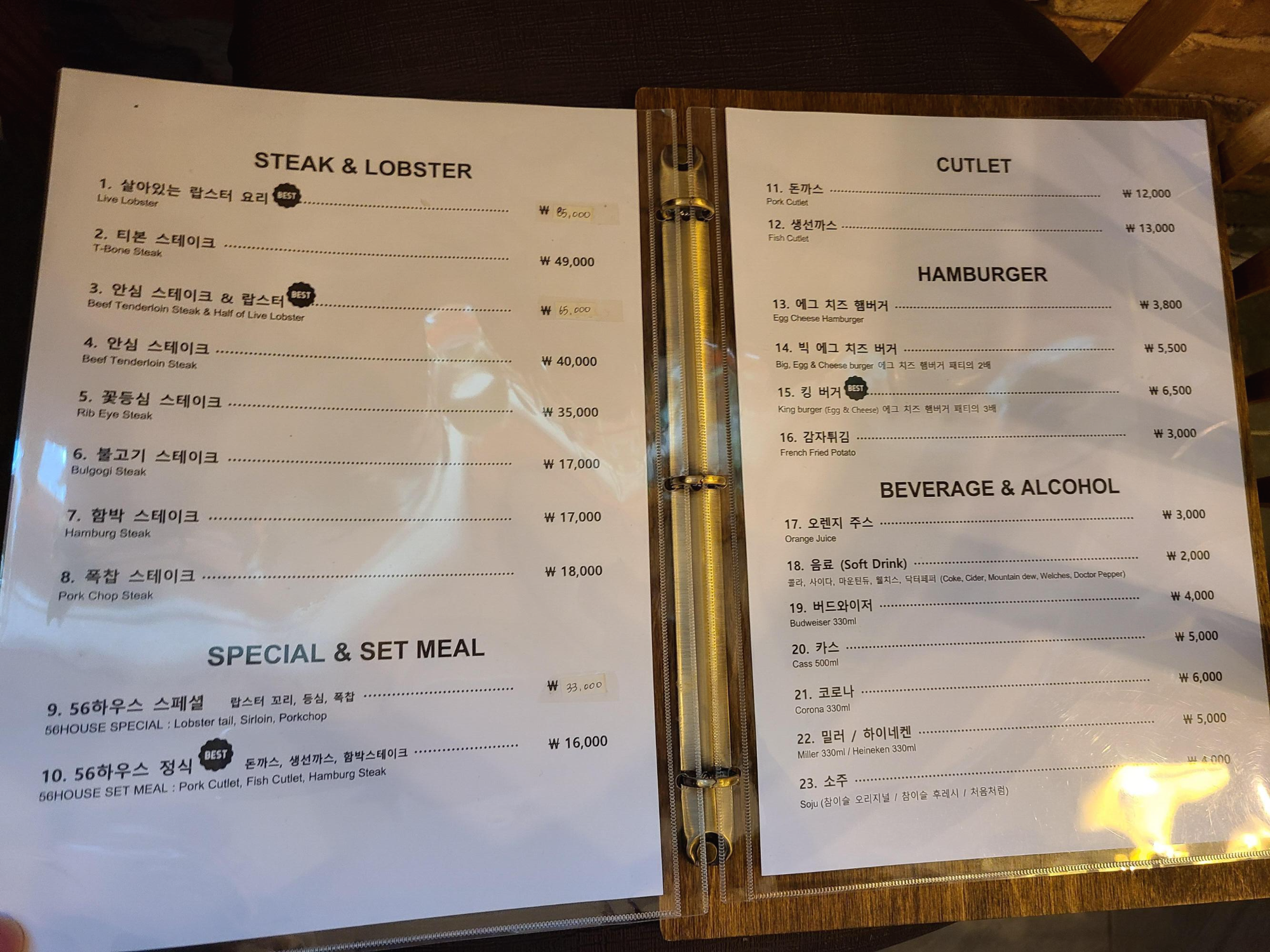 기본적으로 여기는 햄버거랑 돈까스가 메인인 곳 같았어요. 사장님 뵈니 어디서 뵜었는데 보니까 보산동 먹거리에서 햄버거 파셨던 분이네요. 그러고 보니 그 햄버거 가게 이름도 56하우스였었는데 아마 사장님께서 잠깐 나가서 하셨나봐요.