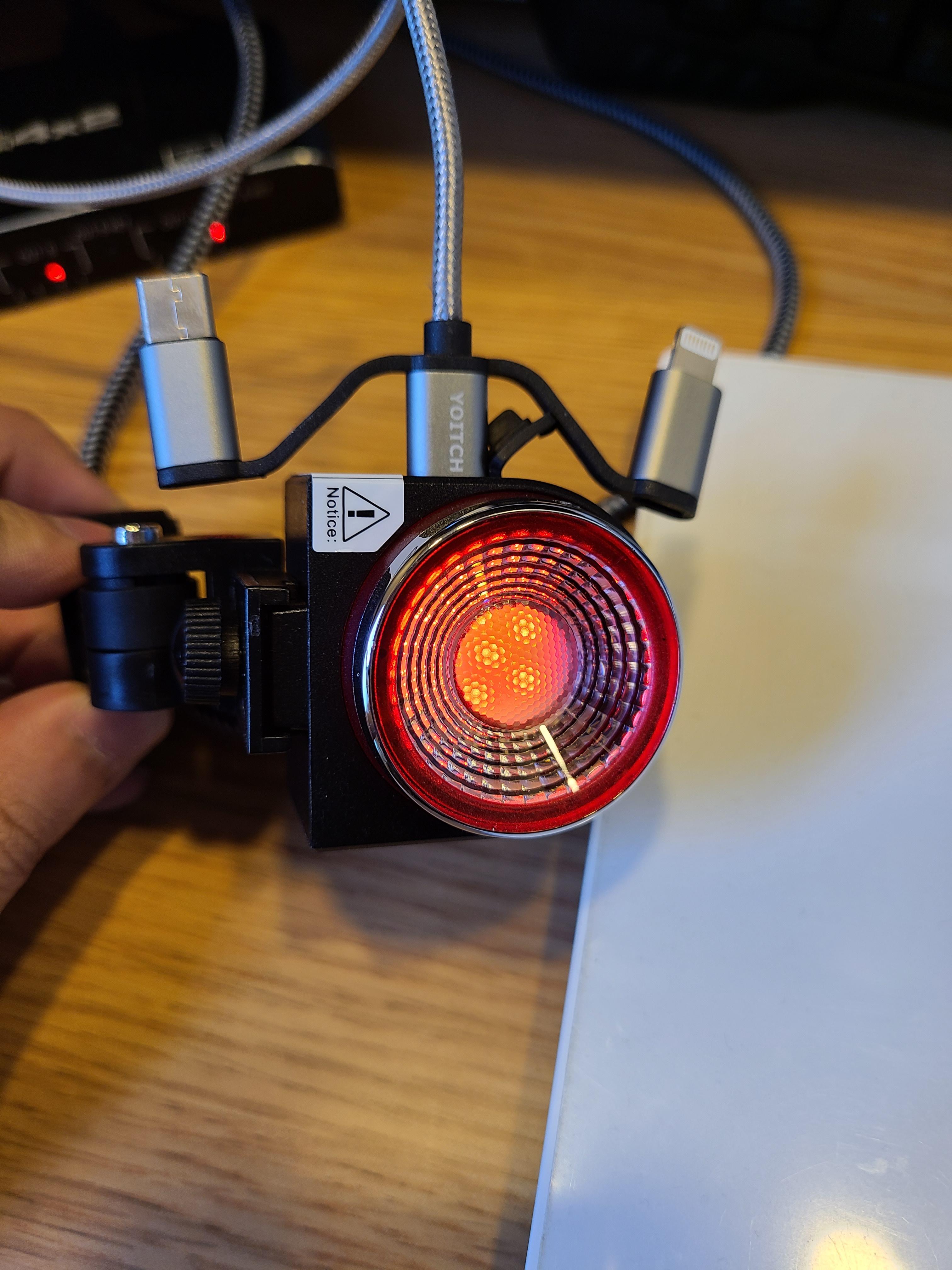 안투시 본체는 시트밑에 달거나 포스트에 다는 방식이 있는데 무엇이 됐든 떨어지지 않게 위에 나사로 고정시키게 되어있습니다. 이런 세심한 설계 너무 맘에 드네요. 위에 적힌대로 후미등 사용전에는 반드시 충전을 해야합니다. 마이크로5핀을 꽂으면 사진처럼 불이 들어오는데 이게 충전중이란 뜻이고 완충되면 불이 꺼집니다.