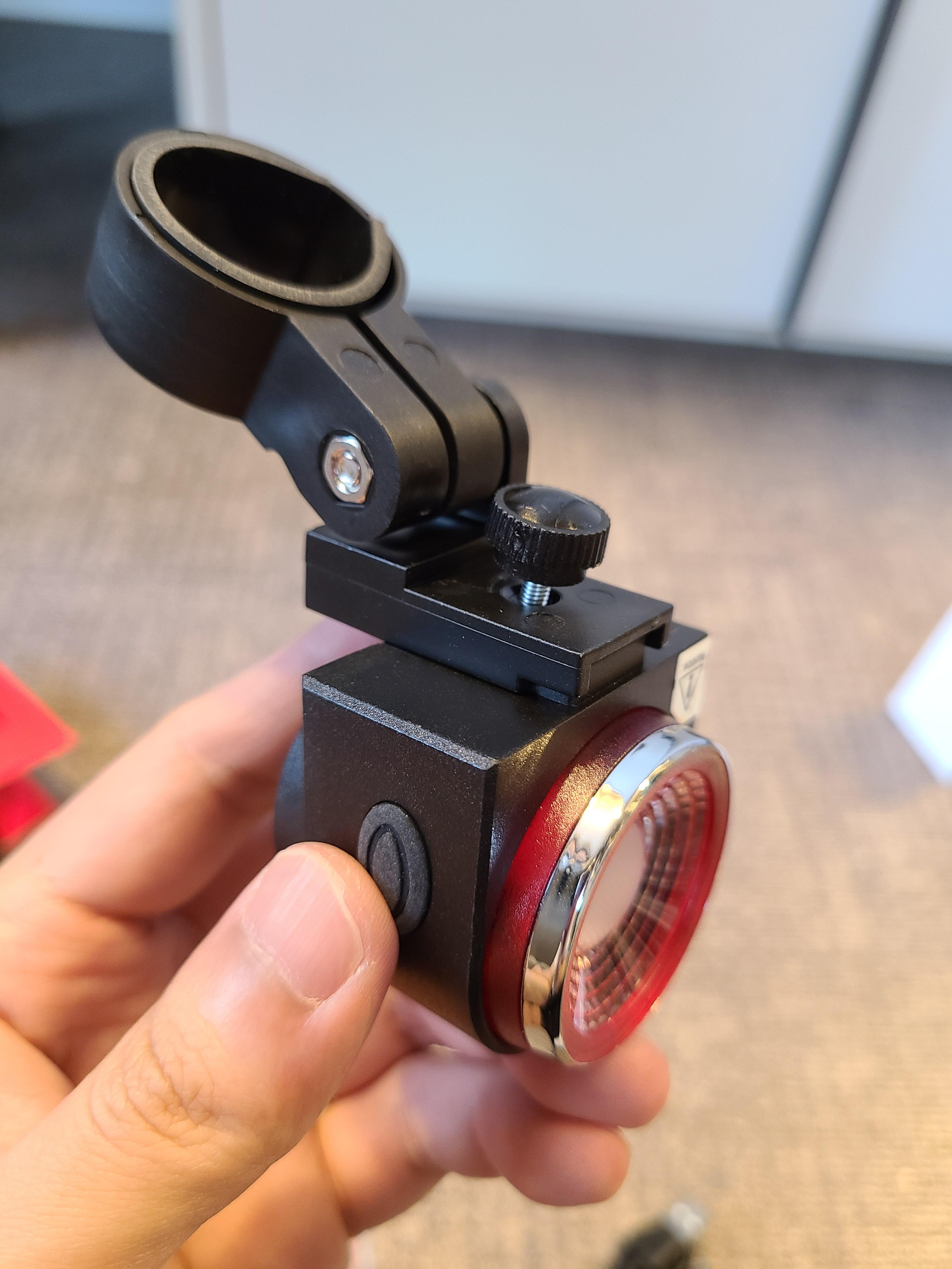 아쉬운 점은 각도 조절이 안됩니다. 이게 후미등 불빛이 좀 쎈데 이러면 뒷라이더들이 눈뽕 맞아서 위험할 수 있습니다. 그래서 땅쪽으로 비추게끔 조절하면 좋을텐데 그게 안되서 어쩔 수 없이 매번 눈뽕을 때리며 라이딩하고 있습니다. 좋게 생각하면 제 위치를 뒤멀리까지 전달할 수 있다는 거니 그만큼 더 안전해지겠죠. (뒷라이더분들 죄송합니다 ㅠ)