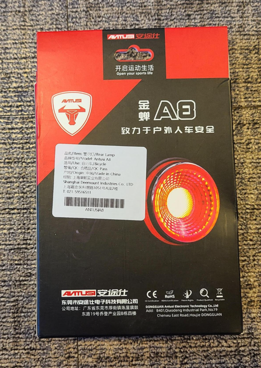 대륙에서 건너온 만큼 중국어로 가득 찬 상자가 왔습니다. 상자 옆에 봉지는 시트마운트로 혹시나 자전거에 안맞을 경우를 대비하여 함께 구매한 옵션템입니다. 저는 후미등을 시트포스트에 장착할 예정이나 혹시 모르니 마운트까지 같이 샀어요.