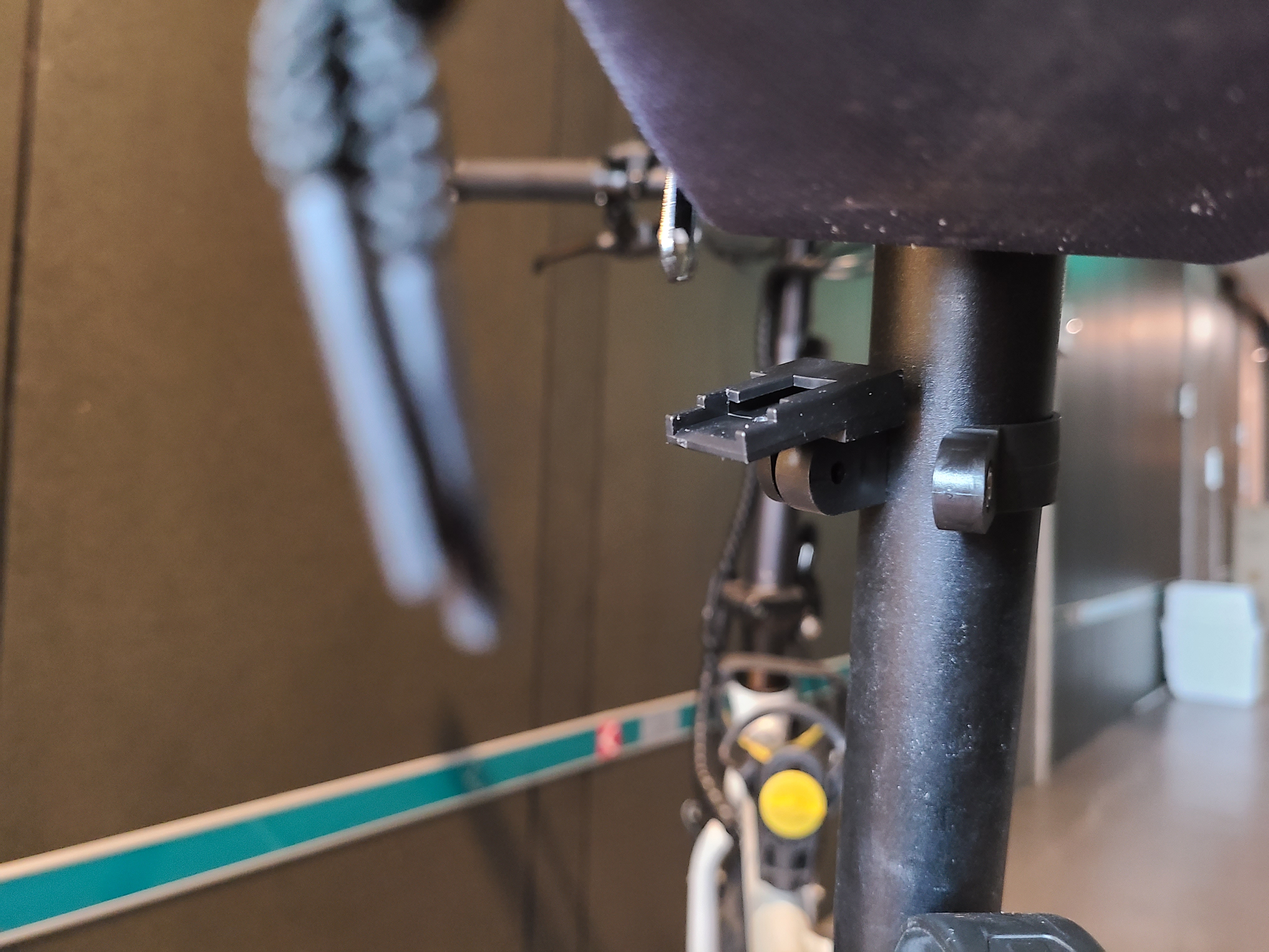 저는 시트 밑에 툴가방이 설치되어있어서 후미반사판은 시트포스트에 설치되어있었습니다. 새로 구매한 안투시도 시트포스트에 장착하려고 했습니다. 하지만 함께 동봉된 시트포스트 마운트가 너무 짧아서 설치가 되지 않네요. 어쩔 수 없이 툴가방을 빼고 시트에 설치하기로 계획을 변경합니다. 설치는 매우 쉽습니다. 시트레일에 마운트 얹어놓고 함께 들어있는 볼트를 쪼으면 단단히 고정이 됩니다. 아래 손가락으로 표시한 곳이 볼트 쪼이는 곳이예요.