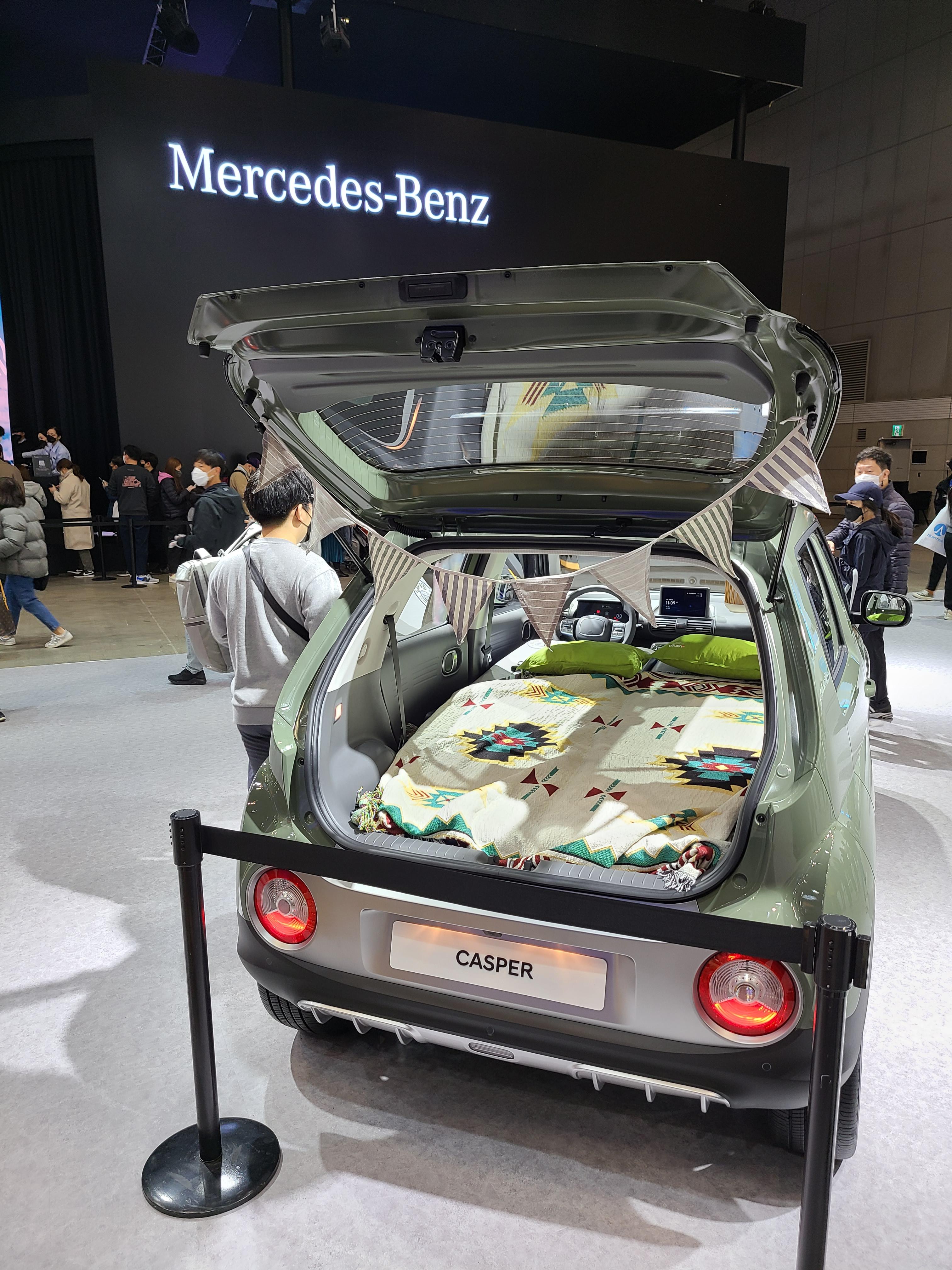 캐스퍼 캠핑카로 만들어 놓은 차도 있었는데.. 흠 너무 작아요. 넓게 1인이 쓰거나 좁게 2인이 쓰는 공간이 될 듯합니다. 차박은 투싼 이상급으로 하는 걸로 하겠습니다 ㅋㅋ