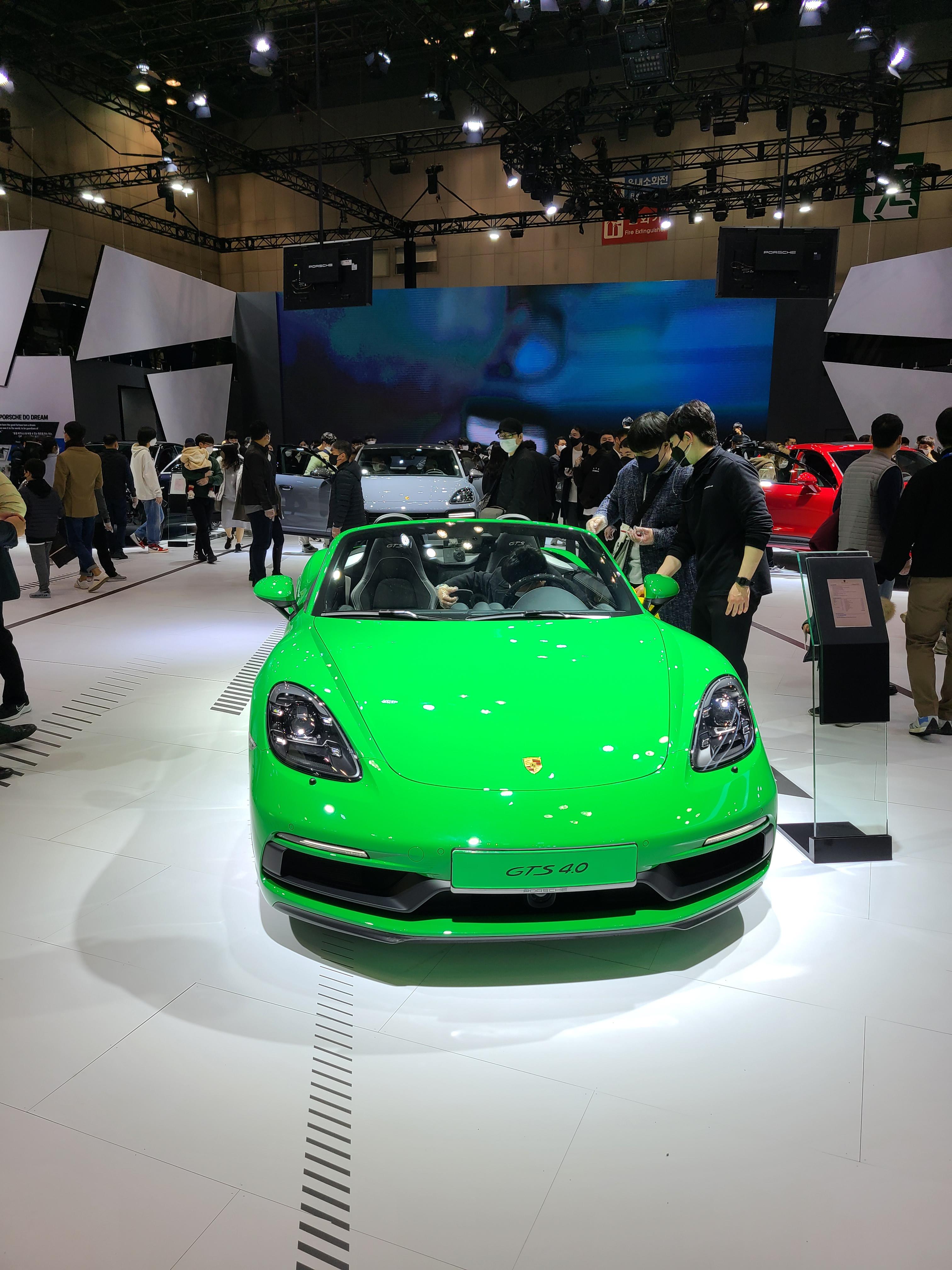 역시 차는 특이한 디자인이거나 색깔이 튀어야 사진이 이쁘게 나오는 듯합니다. 초록색 포르쉐를 보고 저게 뭐야했는데 같이 사진을 찍으니 뭔가 있어보이네요ㅋㅋㅋ 애인이랑 둘이 초록색 앞에서 사진을 많이 찍고 왔어요. 그 옆에는 포뮬러에 나오는 차로 예상되는 레이싱카가 있는데 이전 모터쇼 가면 차 되게 많았었는데 이번 모터쇼에서는 포르쉐밖에 전시하지 않았습니다. 한번 타고 싶어요 ㅠ