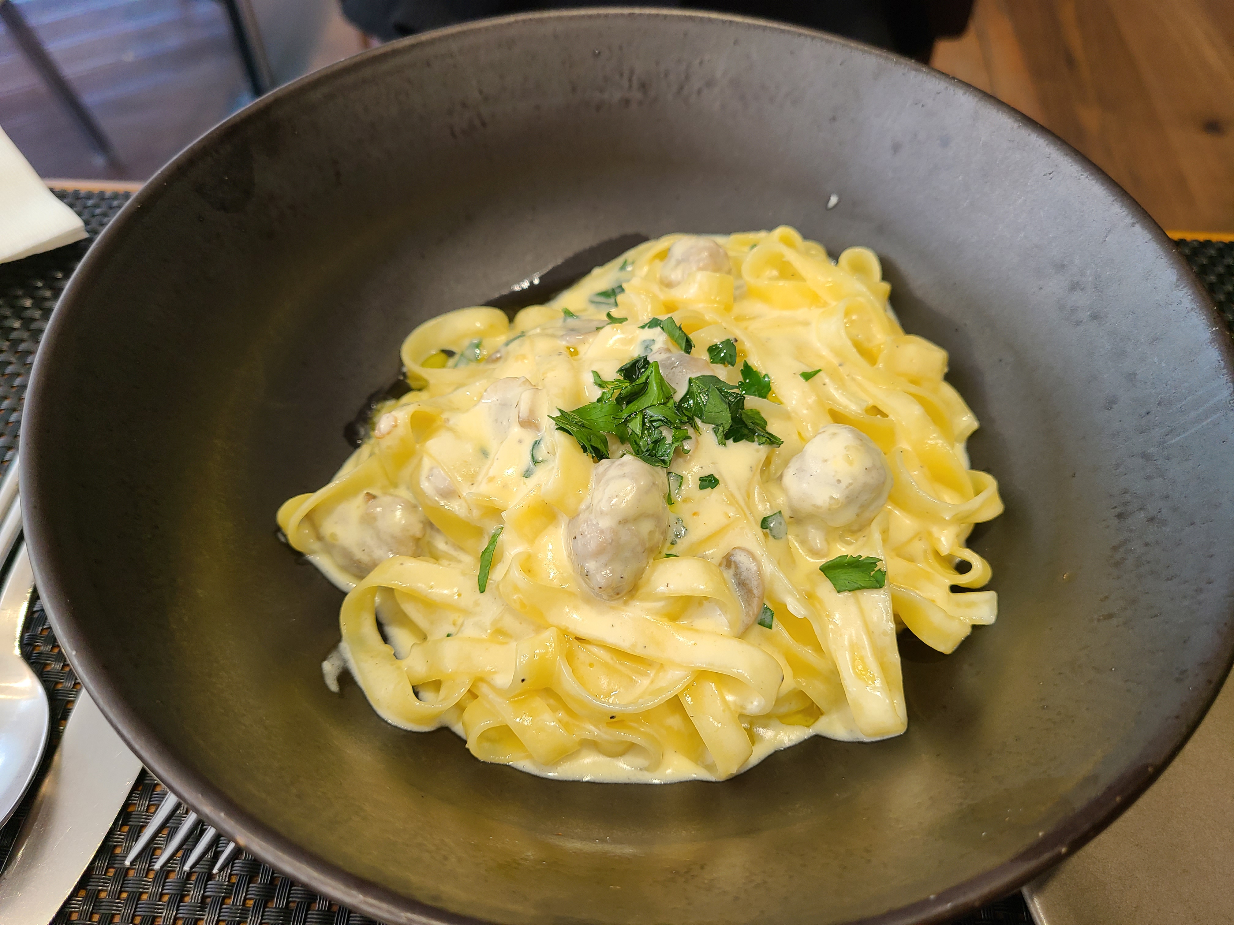 애인은 까르보나라 파스타를 시켰는데 이것도 꾸덕하니 아주 맛있었습니다. 제가 많이 뺏어 먹은 듯하네요 ㅋㅋㅋ 피자는 양이 적을까봐 시켰는데 짜글이도, 파스타도 양이 많아서 안 시켜도 될뻔했습니다. 하지만 남기지 않고 다 먹고 나왔어요 ㅋㅋㅋㅋ 모터쇼에서 기분이 언짢았는데 여기서 맛있게 먹고 기부니가 좋아졌습니다.