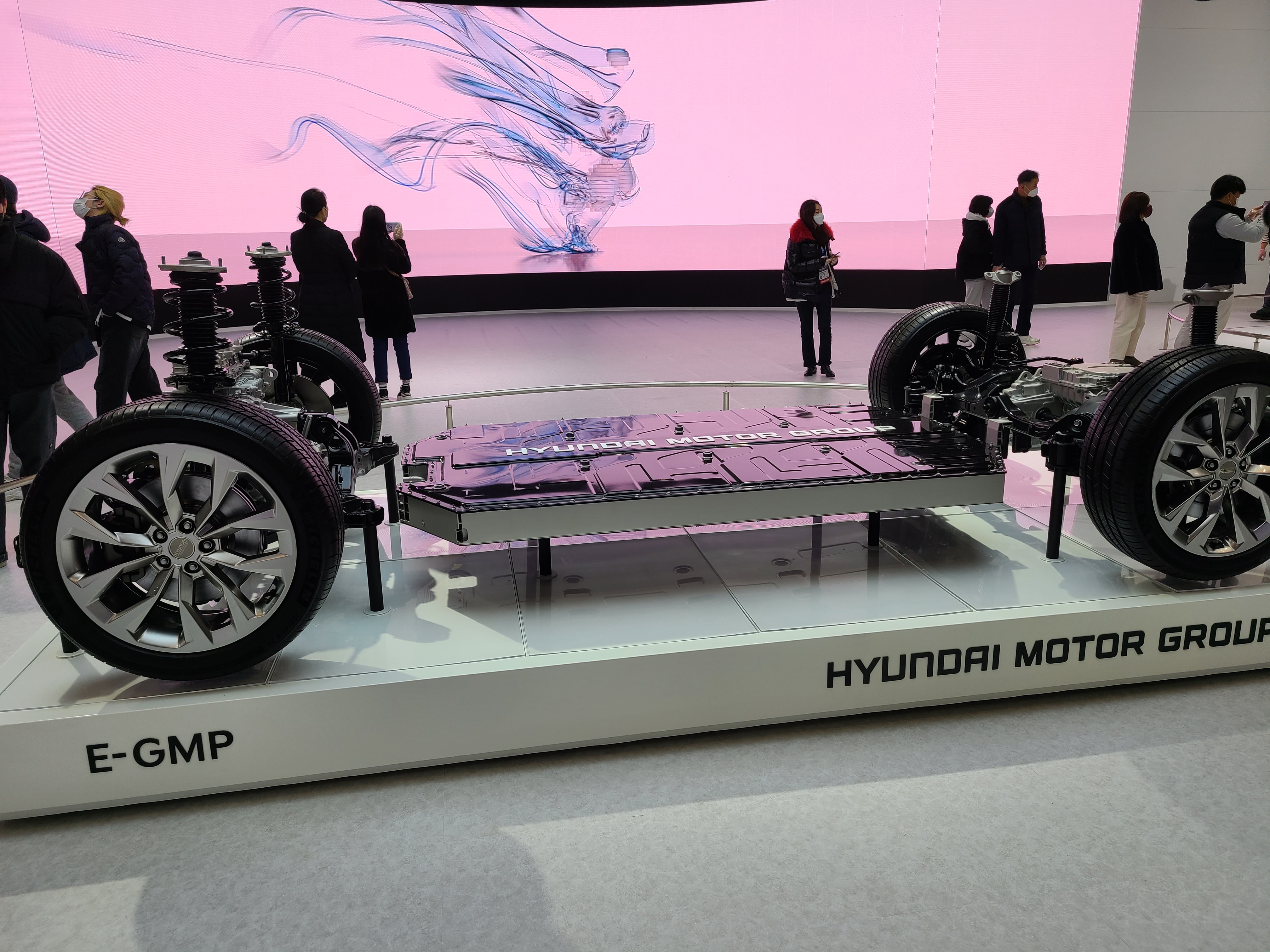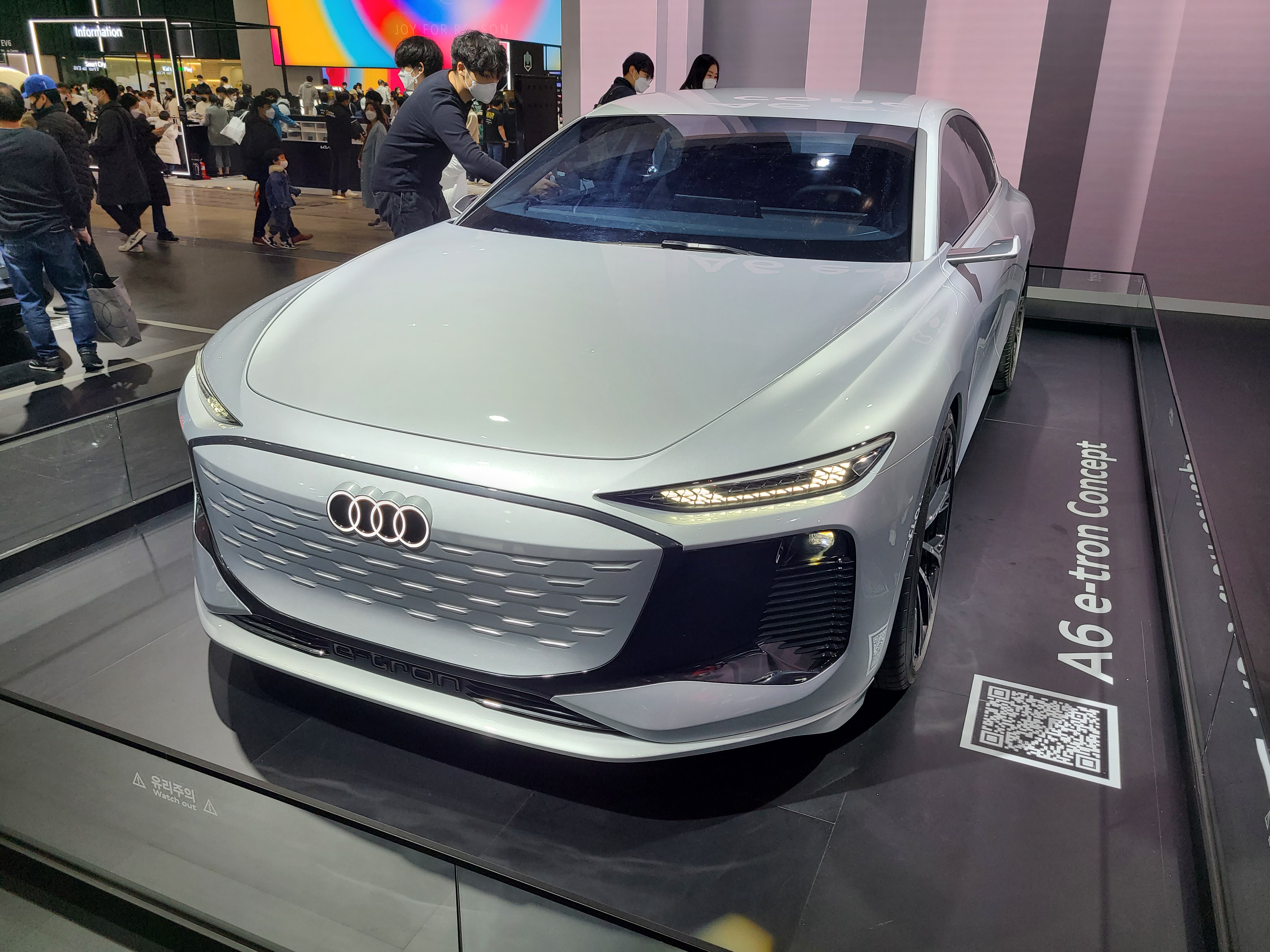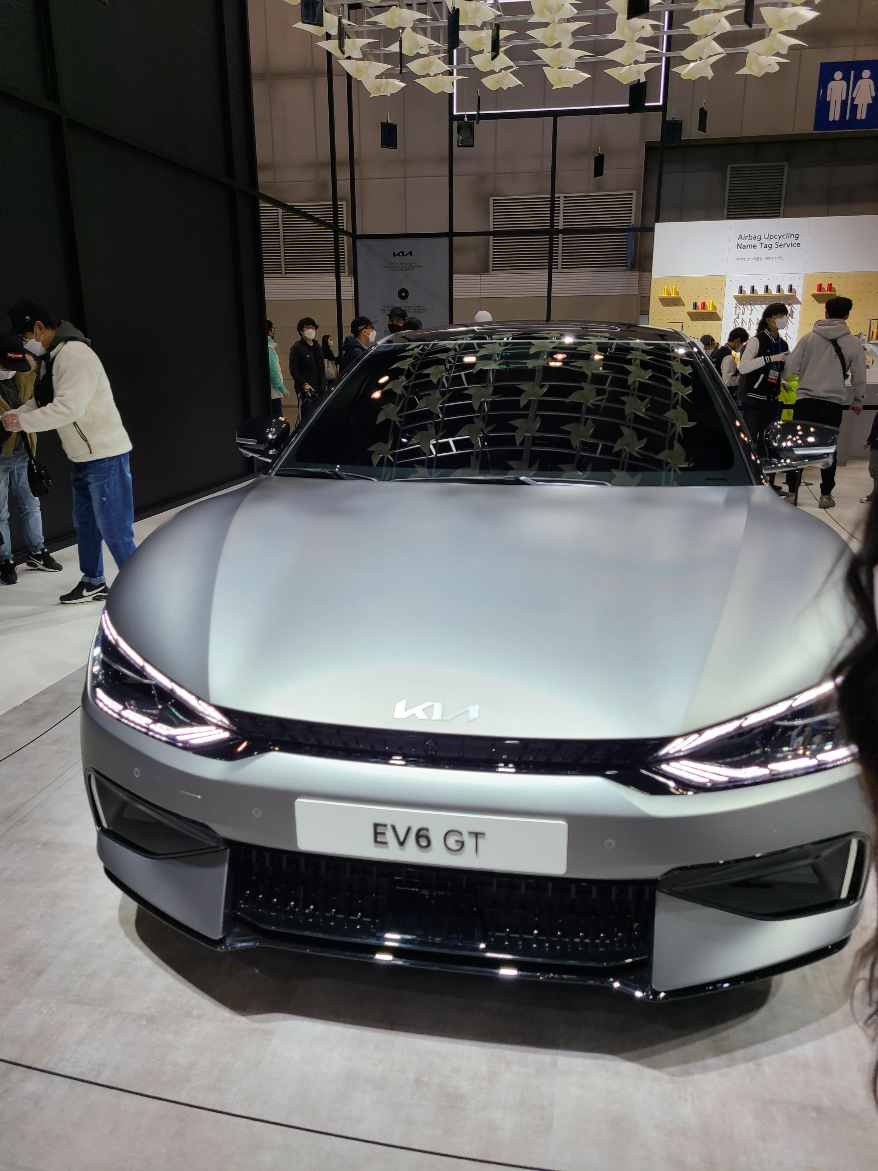 아우디랑 기아 차량은 크게 인상적인 게 없었습니다. 다 전기차 중점으로 보여줬는데 신차도 없고 디자인도 다 비슷비슷하고 특색이 없었던 거 같습니다. 그나마 기아의 경우 국내 브랜드답게 부스를 이쁘게 잘 꾸며놨습니다. 미러룸? 도 있고 물을 쏟아서 글씨 쓰는 이벤트도 있는데 정작 차는 볼 게 없었다는...? 애인이랑 부스에서 사진만 열심히 찍고 차 구경은 안 하고 온 듯합니다 ㅋㅋㅋㅋ 그렇게 기아 부스 나오는 길에 EV6를 봤는데 이건 진짜 이쁘네요. 물론 이미 양산돼서 길거리에서 종종 보긴 하는데, 길거리에서 볼 때마다 저거 어디 차인데 왜케 이쁘지? 하고 트렁크 쪽을 보면 기아가 적혀있더라구요. EV6 너무 이쁩니다. 사고 싶드아!
