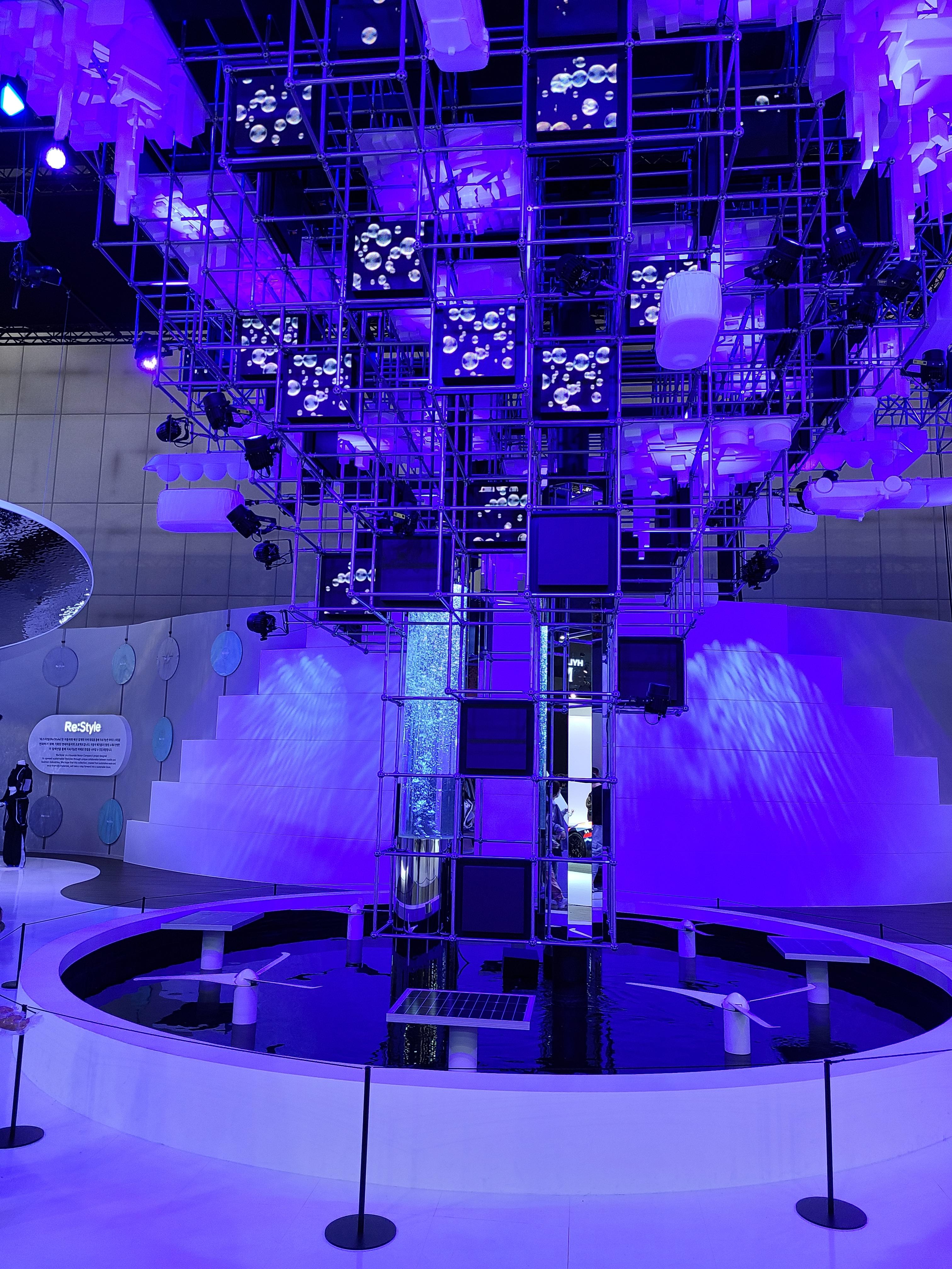 그 옆에는 수소차 넥쏘 차량이 있었는데 항상 친환경 강조하는 넥쏘인 만큼 재생에너지, 물을 주제로 조형물을 만들어놨네요. 항상 느끼지만 예술은 신의 영역이라 이해할 수가 없어요 ㅠ