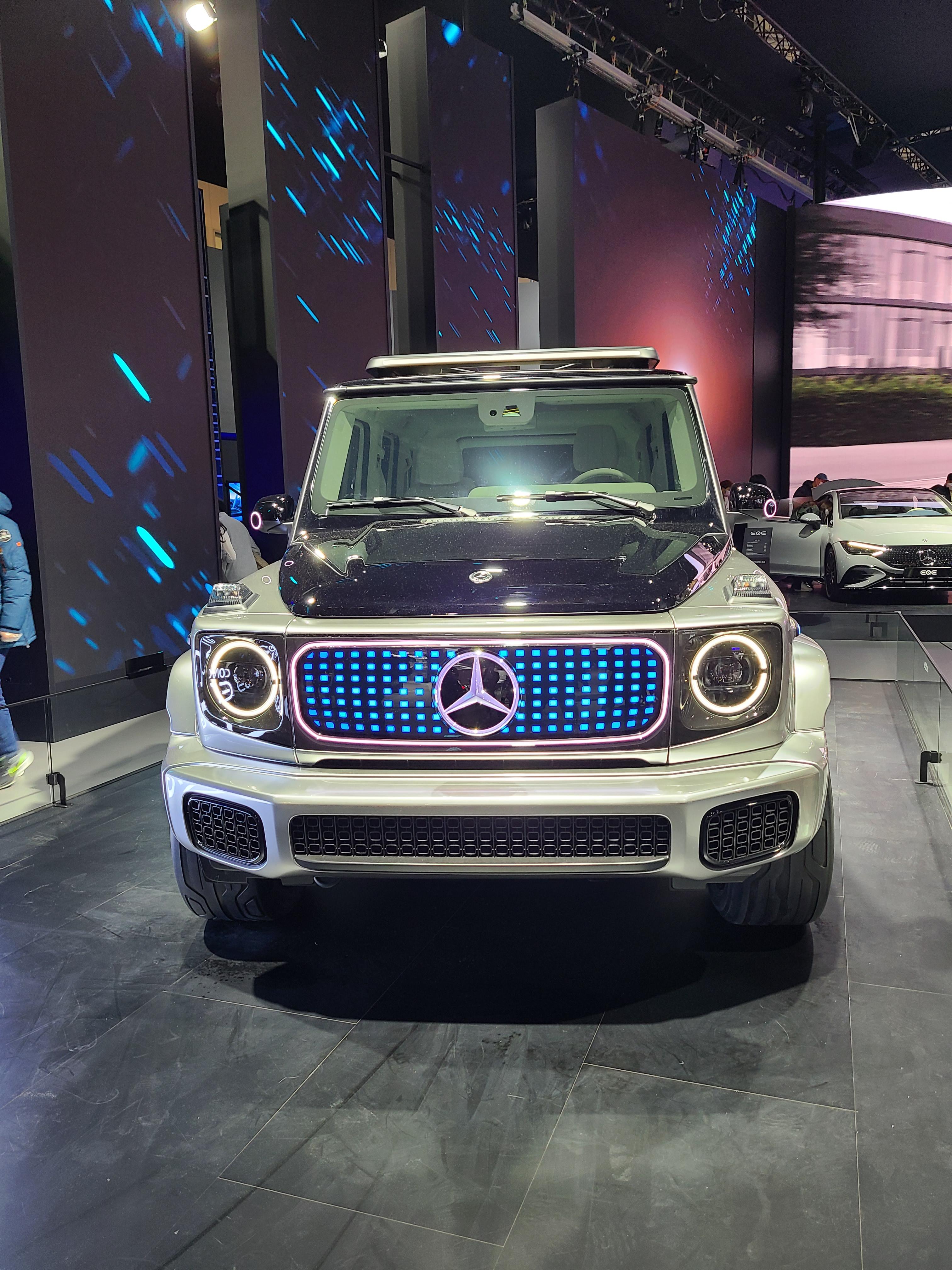 이번 전시장에서 가장 아쉬웠던 부스는 벤츠 같아요. 차 종류는 많았는데 전기차만 나왔고 디자인도 인상적이지 않았어요. 패밀리룩 디자인이겠지만 뭔가 아쉬운 부분이 많아서 눈으로만 보고 사진은 찍지 않았습니다. 그러다가 마지막쯤에 있는 SUV에 LED 넣고 이뻐 보여서 요것만 사진 찍었네요. 벤츠.. 상당히 아쉬웠어요 ㅠ