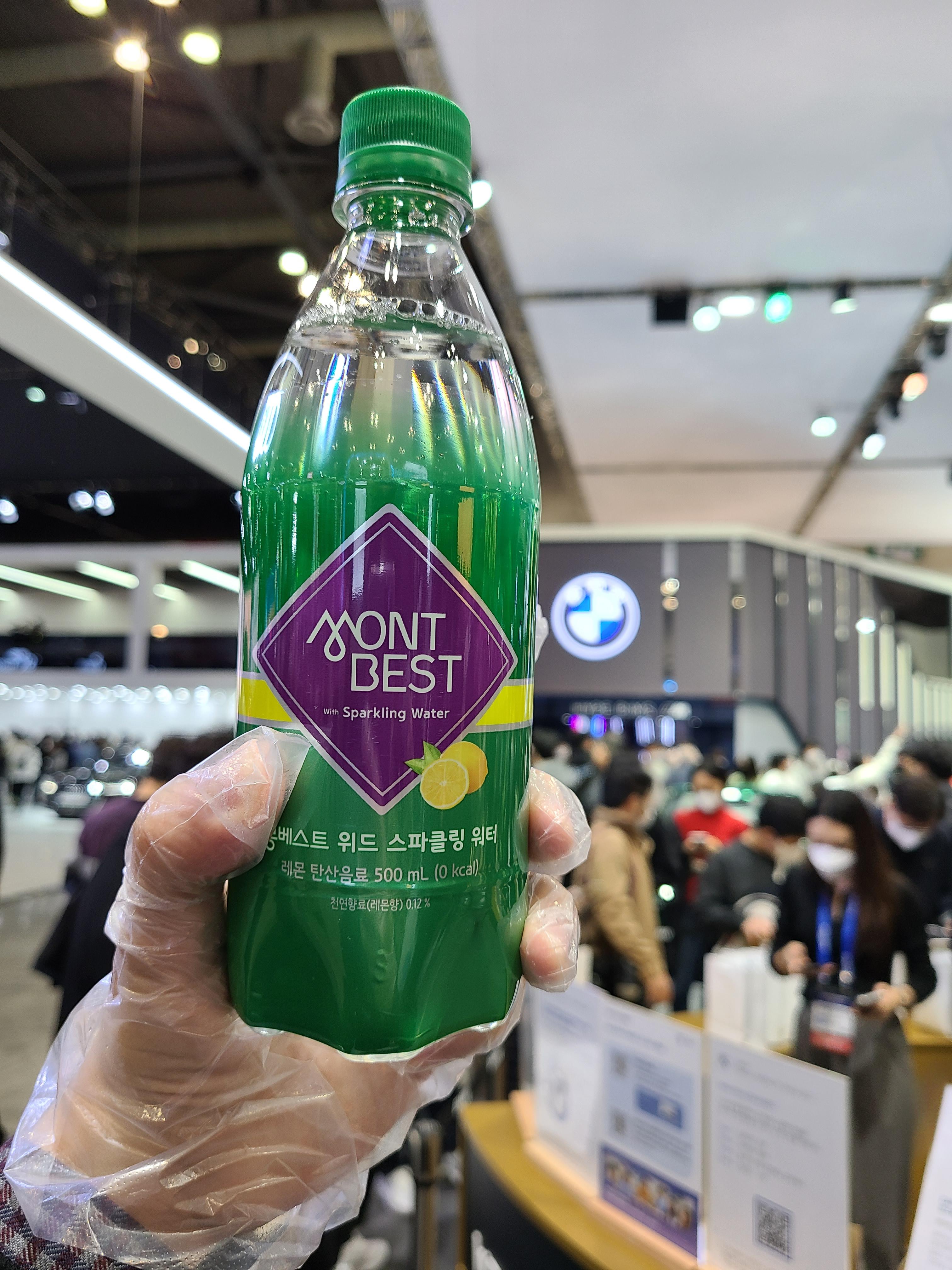 BMW 부스에서는 몇 가지 이벤트가 있었는데요, 함께 간 애인이 지치고 목마르다 하여 이벤트 참여하고 몽베스트 탄산수를 받았습니다. 탄산수 받고 사람 없는 구석에 가서 조심히 마셨어요.