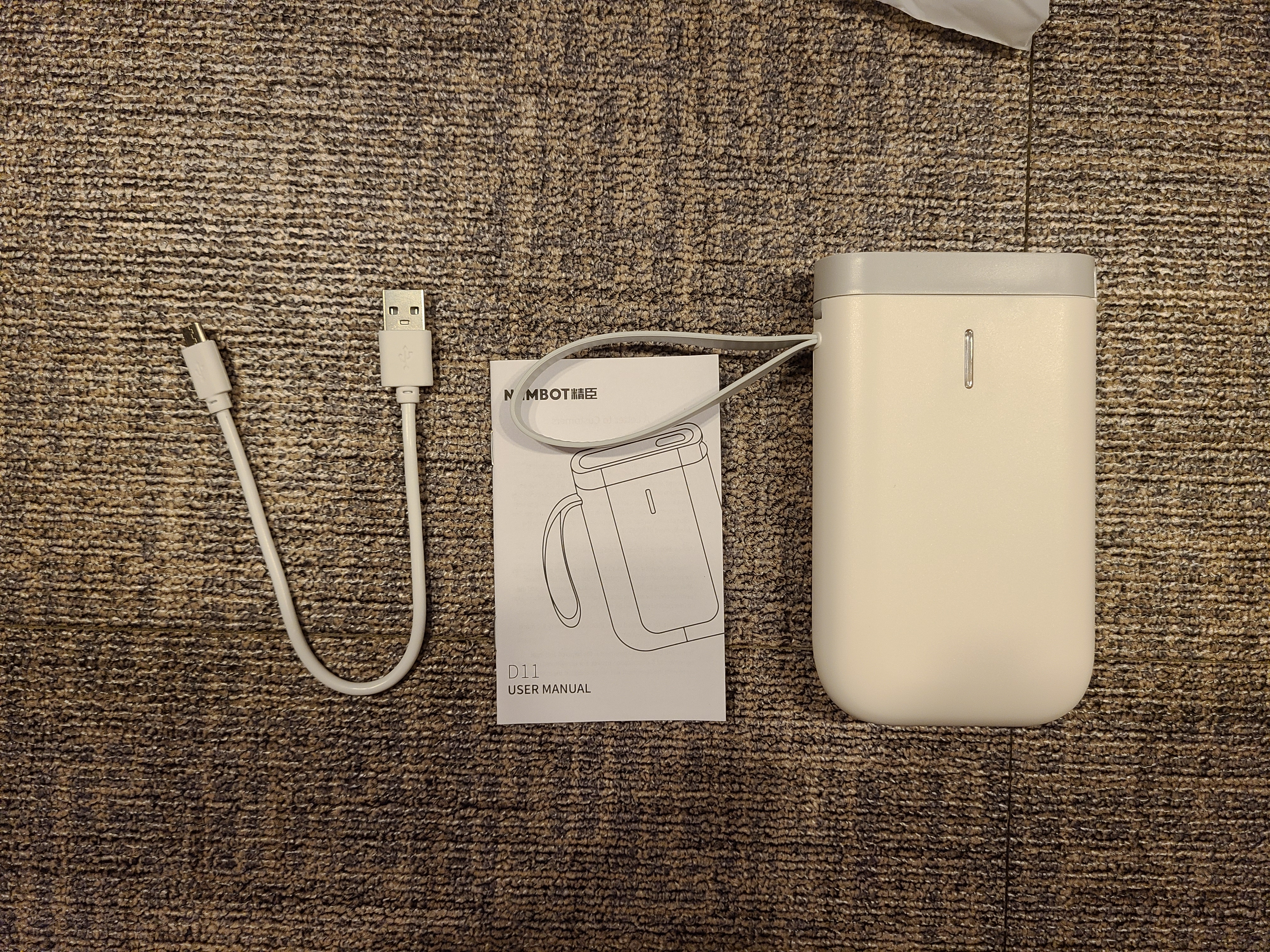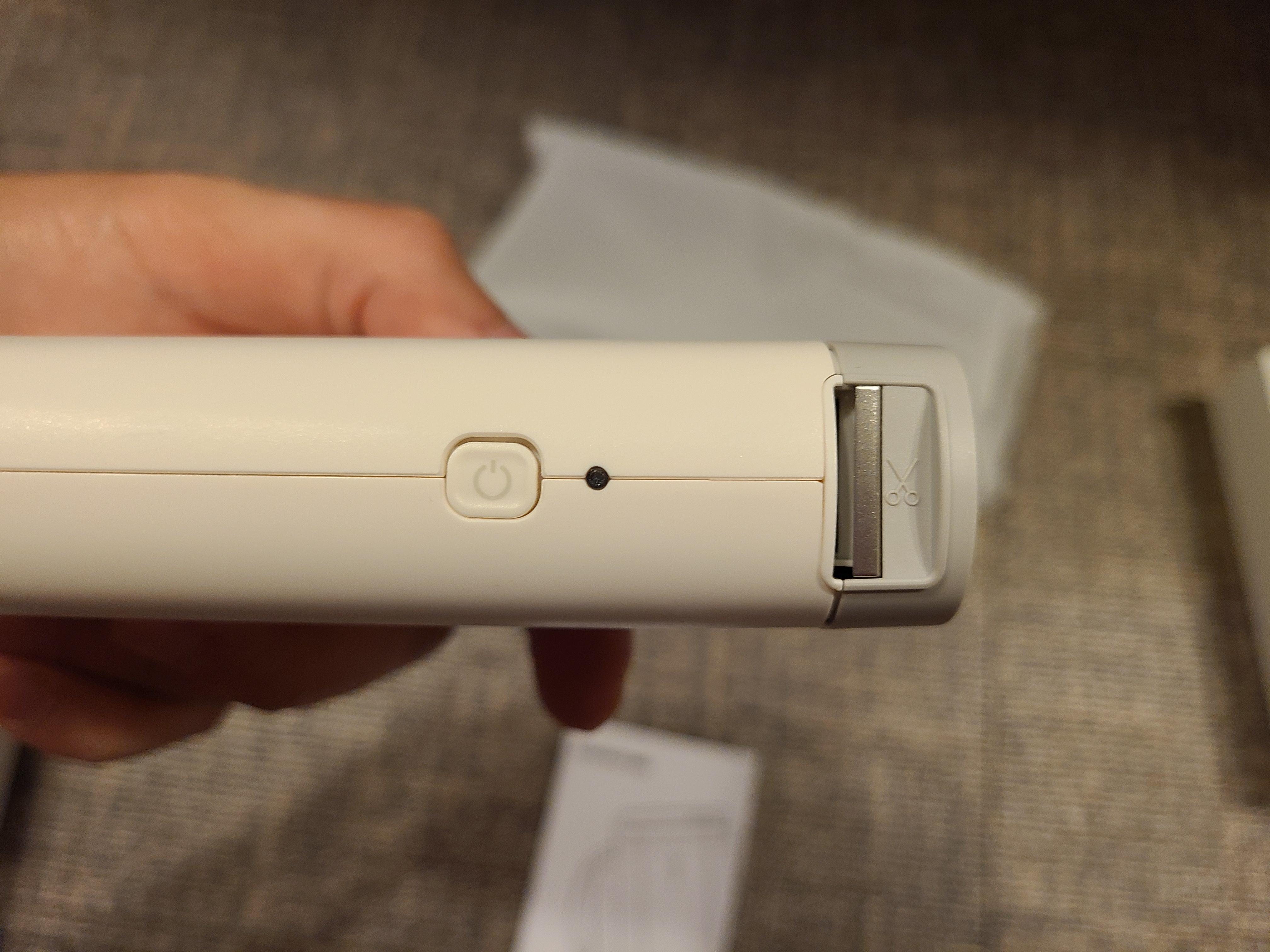 구성품으로는 본체 + 충전 케이블(마이크로 5핀) + 인쇄지 끝입니다. 상당히 심플하네요.