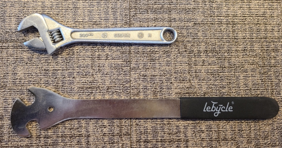 저희 집에는 자동차 정비 공구가 거의 다 있습니다. 그래서 이런 자전거 정비쯤은 쉽게(?) 생각하고 전기자전거도 시작했었는데 자전거 만들면서 유일하게 없었던 공구가 있었으니 15mm 스패너입니다. 달리 말하면 자동차 정비에서는 쓸 일이 없는데 자전거에서는 있는 유일한 공구인 셈이죠. 처음 조립할 때는 아쉬운 대로 몽키스패너로 했었는데 문제는 몽키가 두꺼워서 크랭크암과 페달 사이에 들어가질 않았어요. 억지로 쑤셔 넣어서 작업하다보니 손상도 되고 그랬는데 알고 보니 페달 체결용 스패너가 따로 있더라구요. 그래서 바로 구입!!