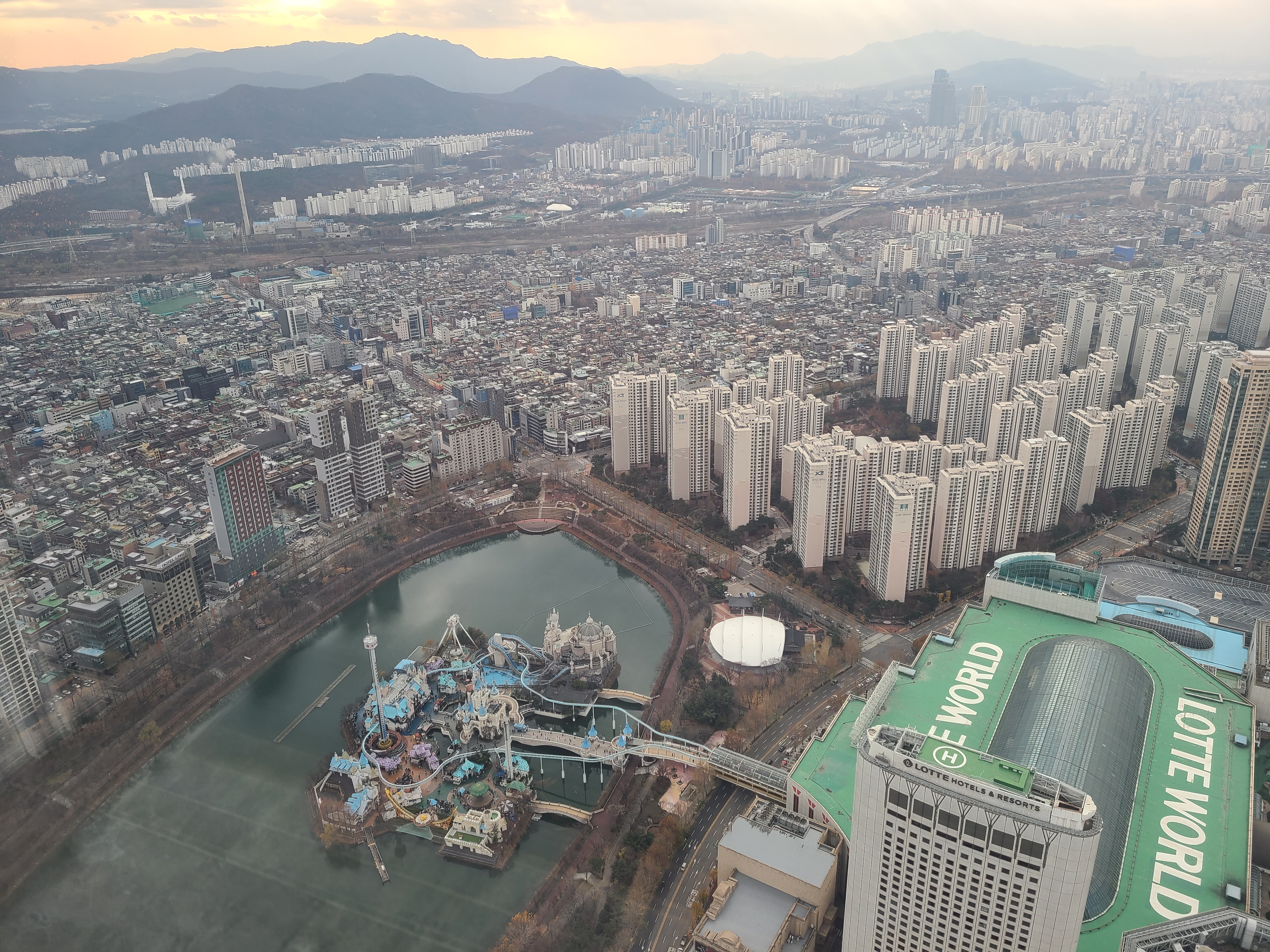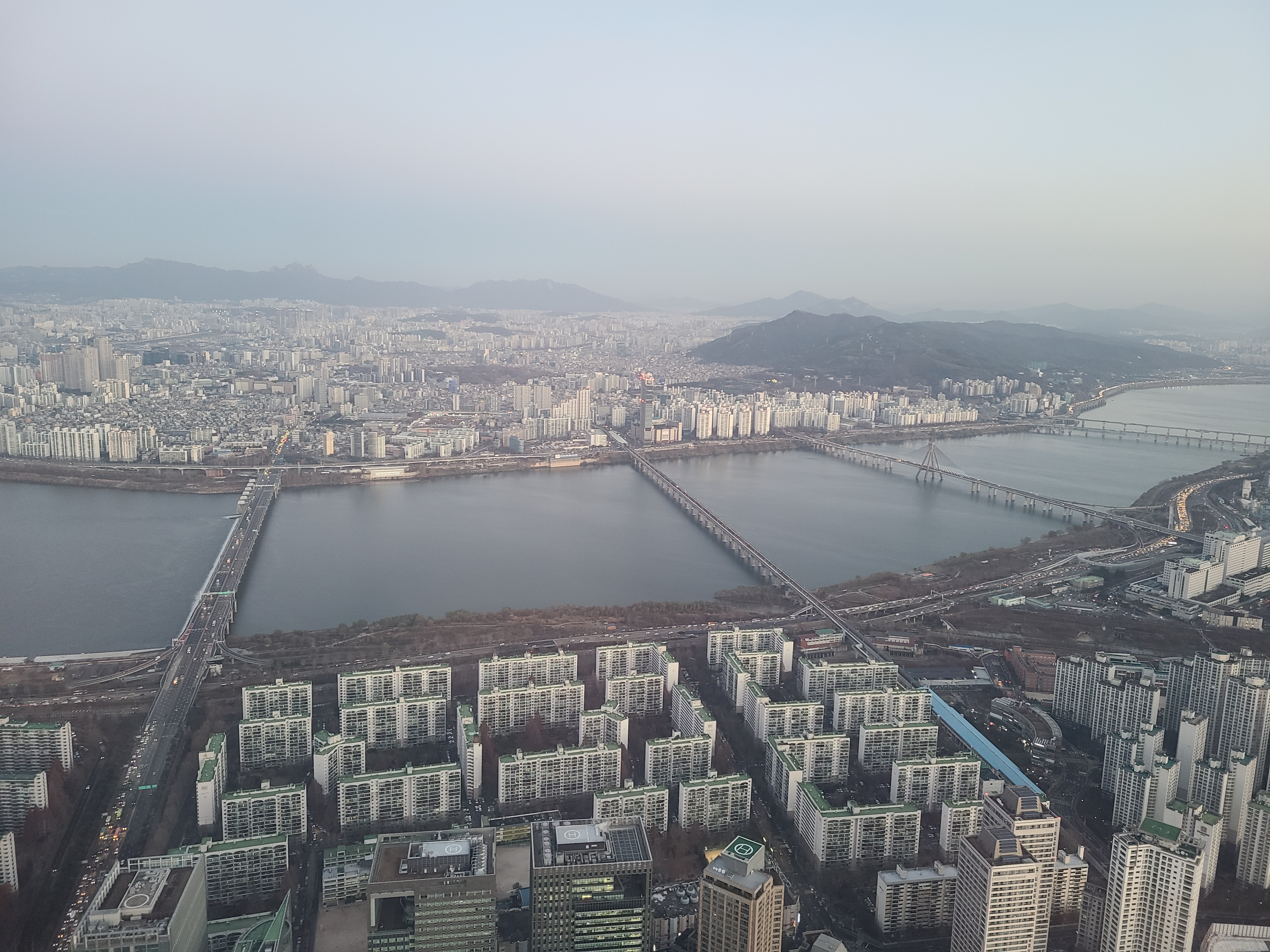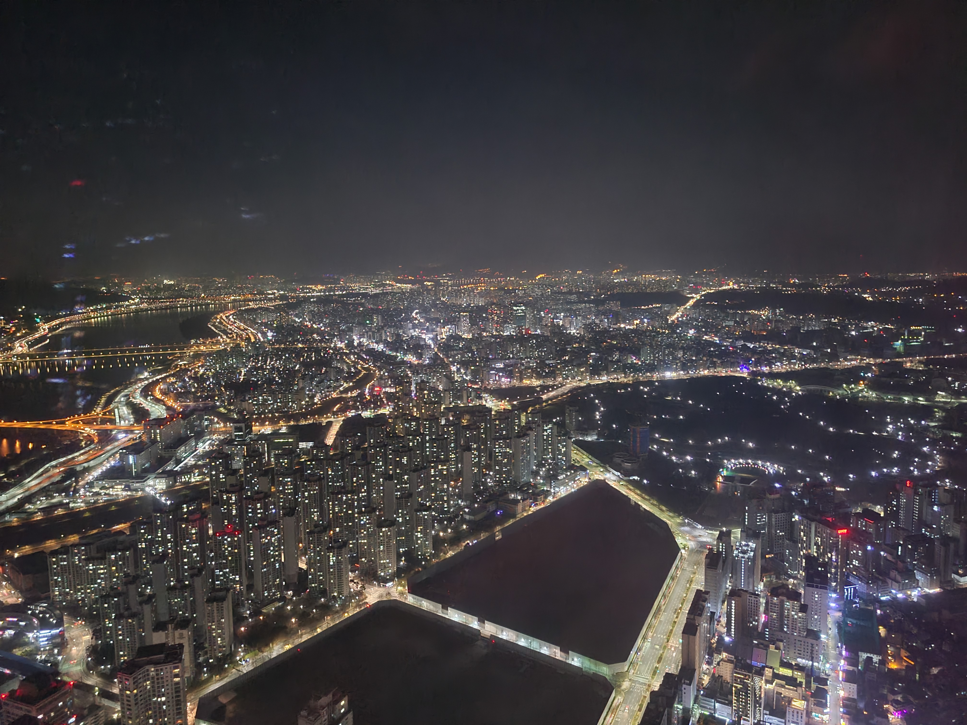 엘베를 타고 79층에 올라오면 로비가 있습니다. 여기 뷰도 끝장나더라구요. 블로그에 돌아다니는 롯데월드 항공샷이 여기서 찍었을 거라 생각했어요. 제가 간 날 날씨가 우중충해서 사진이 이쁘게 나오지 않아 좀 아쉬웠지만 그래도 뷰만큼은 진짜 멋지네요.