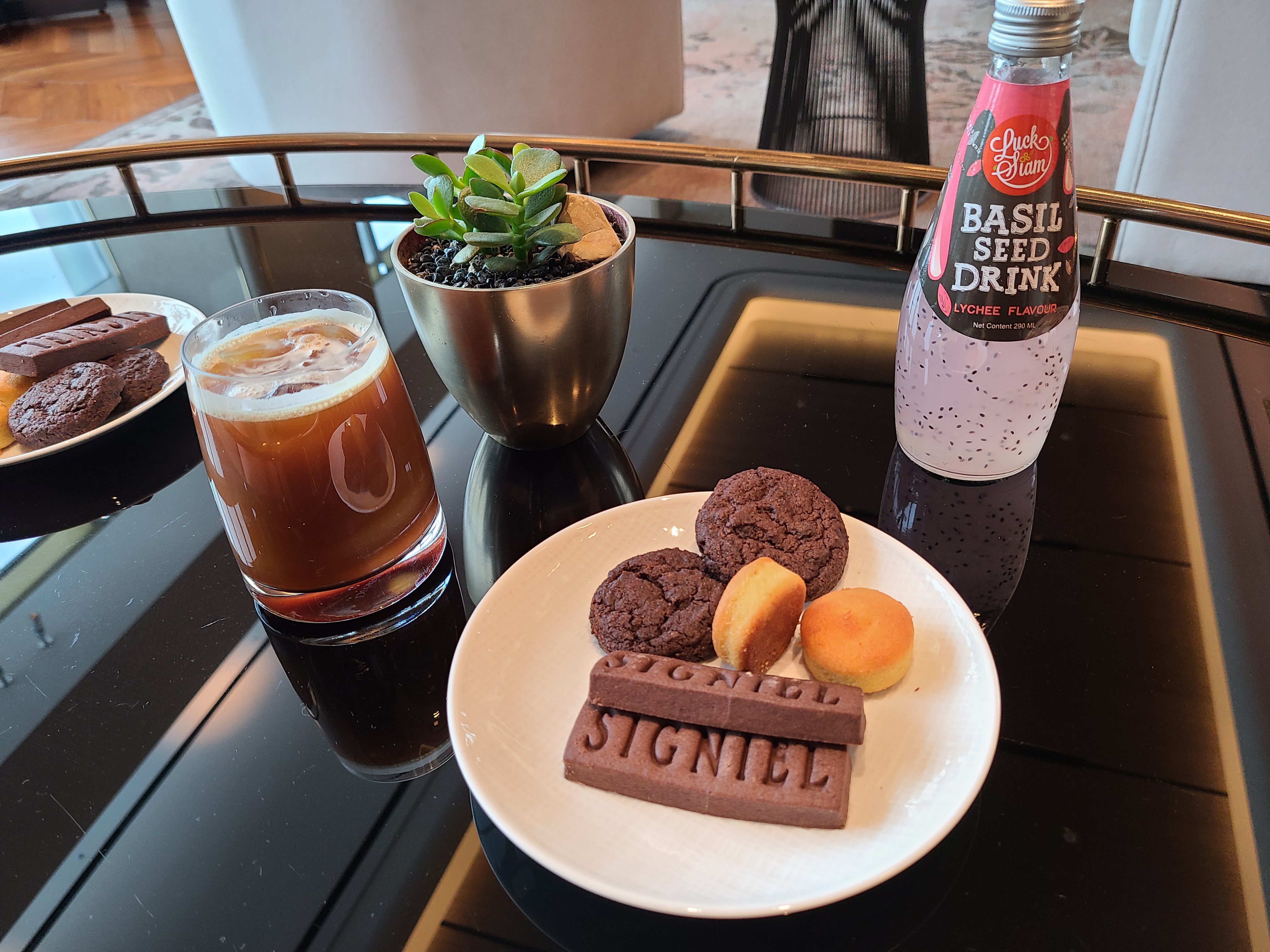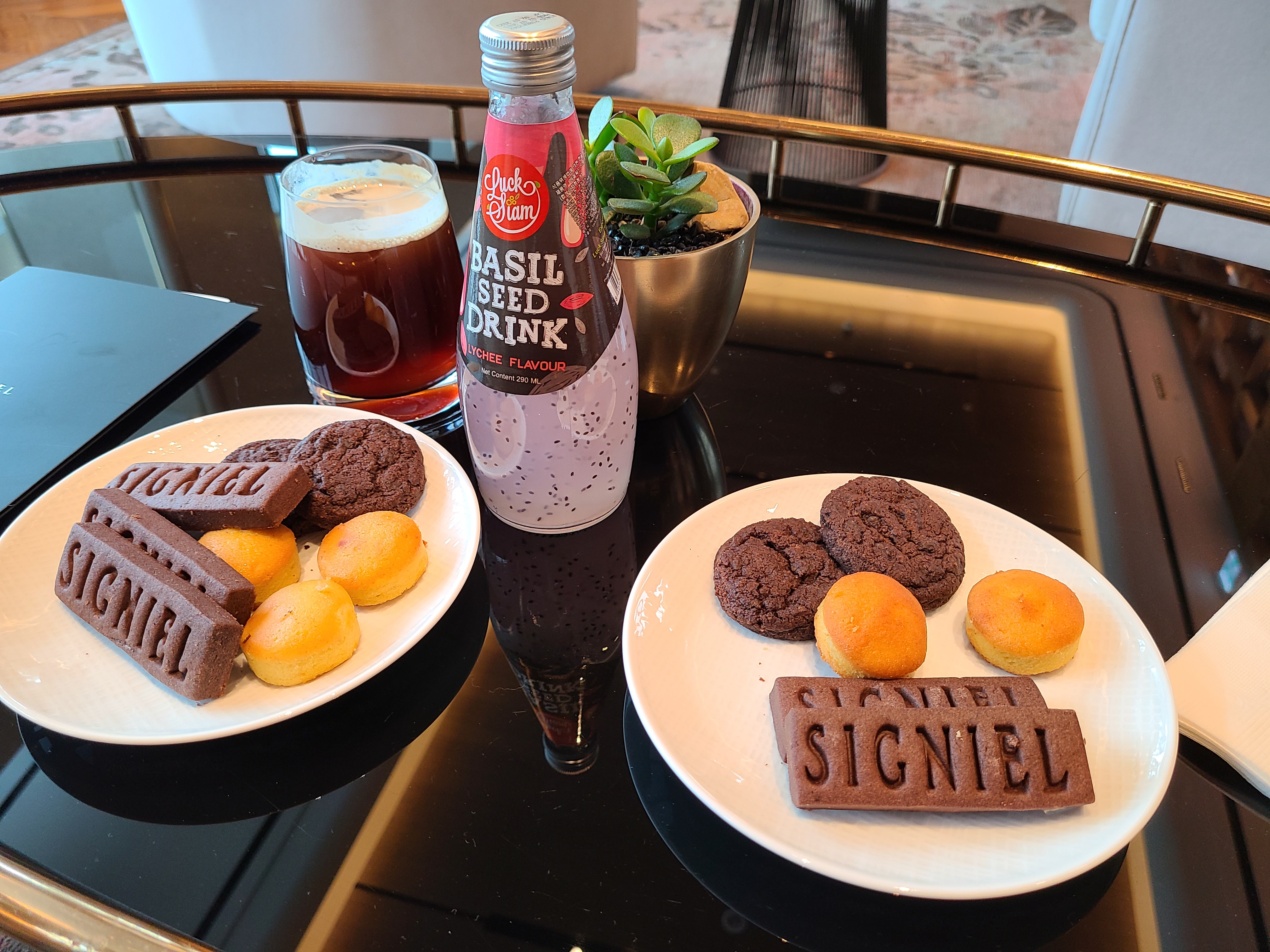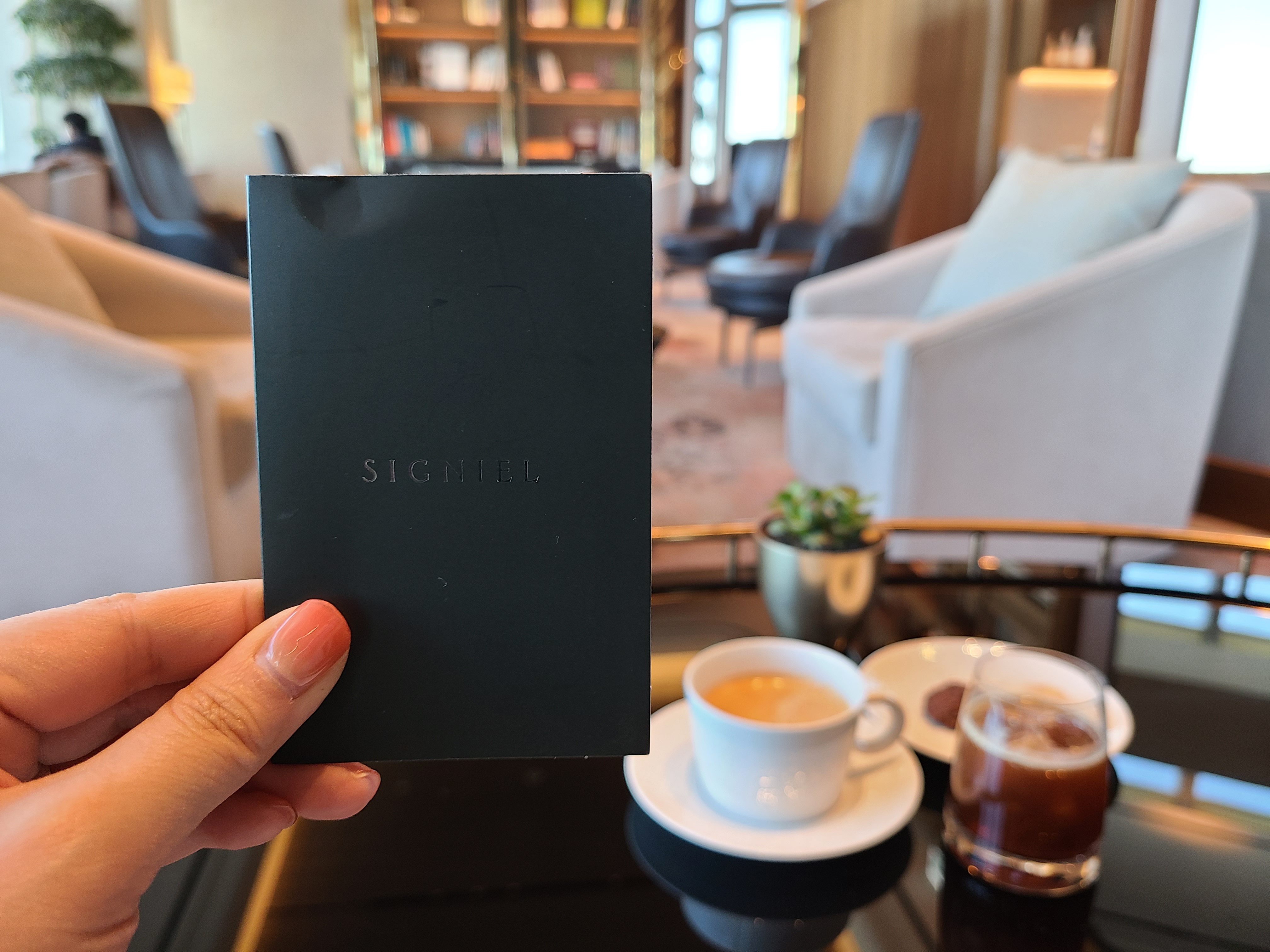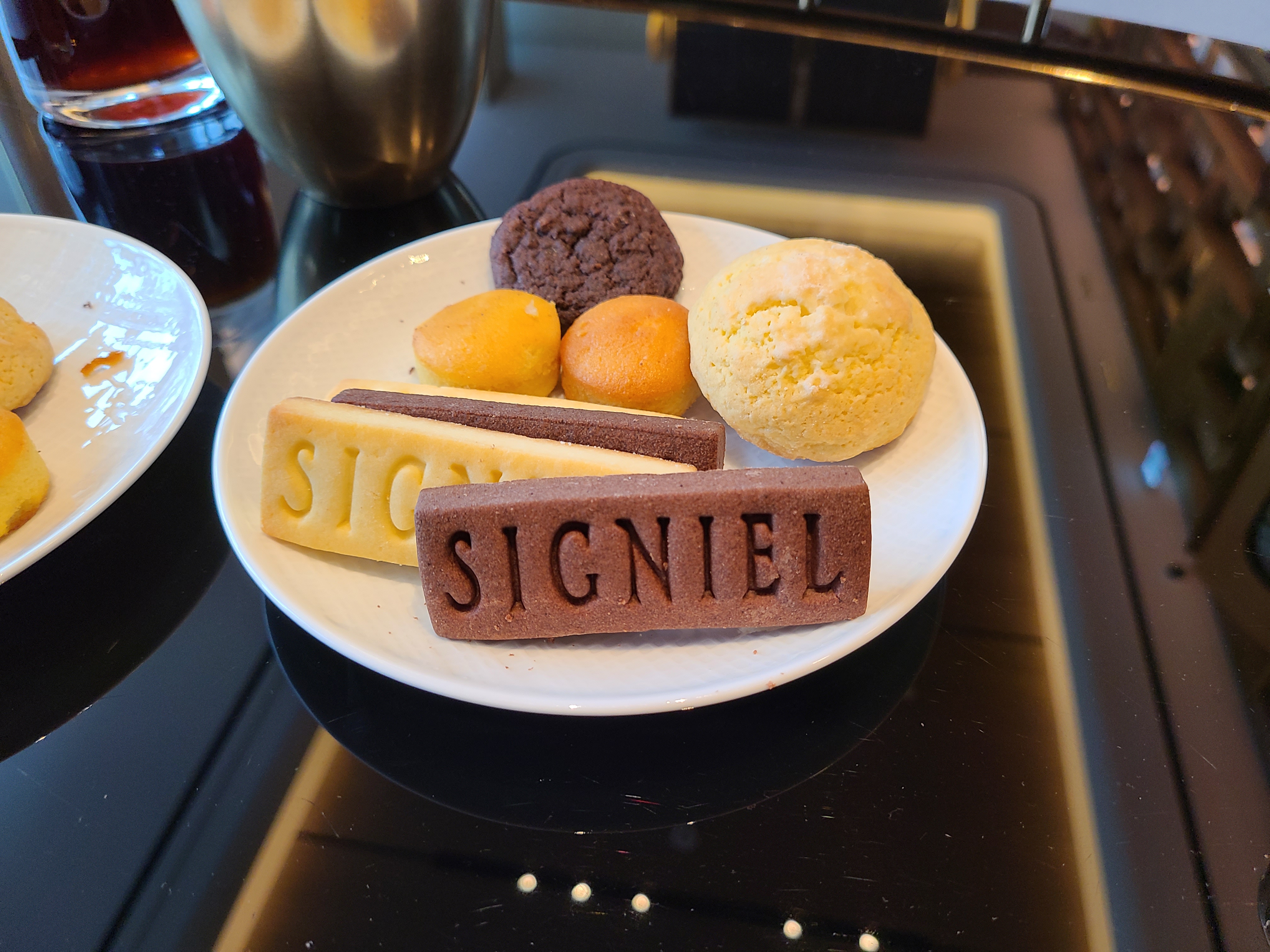 그리고 유명한 시그니엘 쿠키! 블로그 보면 종종 시그니엘 쿠키가 없어서 아쉬웠다는 글들이 있었는데 저는 다행히도 맛보게 됐습니다. 초코쿠키만큼은 달지 않고 칼로리 밸런스 과자 식감에 적당한 달달함? 라운지에 있는 쿠키 중에 제일 맛있었던 거 같아요. 하지만 가운데 시그니엘 글자가 주는 고오급진 시각적인 맛도 무시할 수 없어요 ㅋㅋㅋ