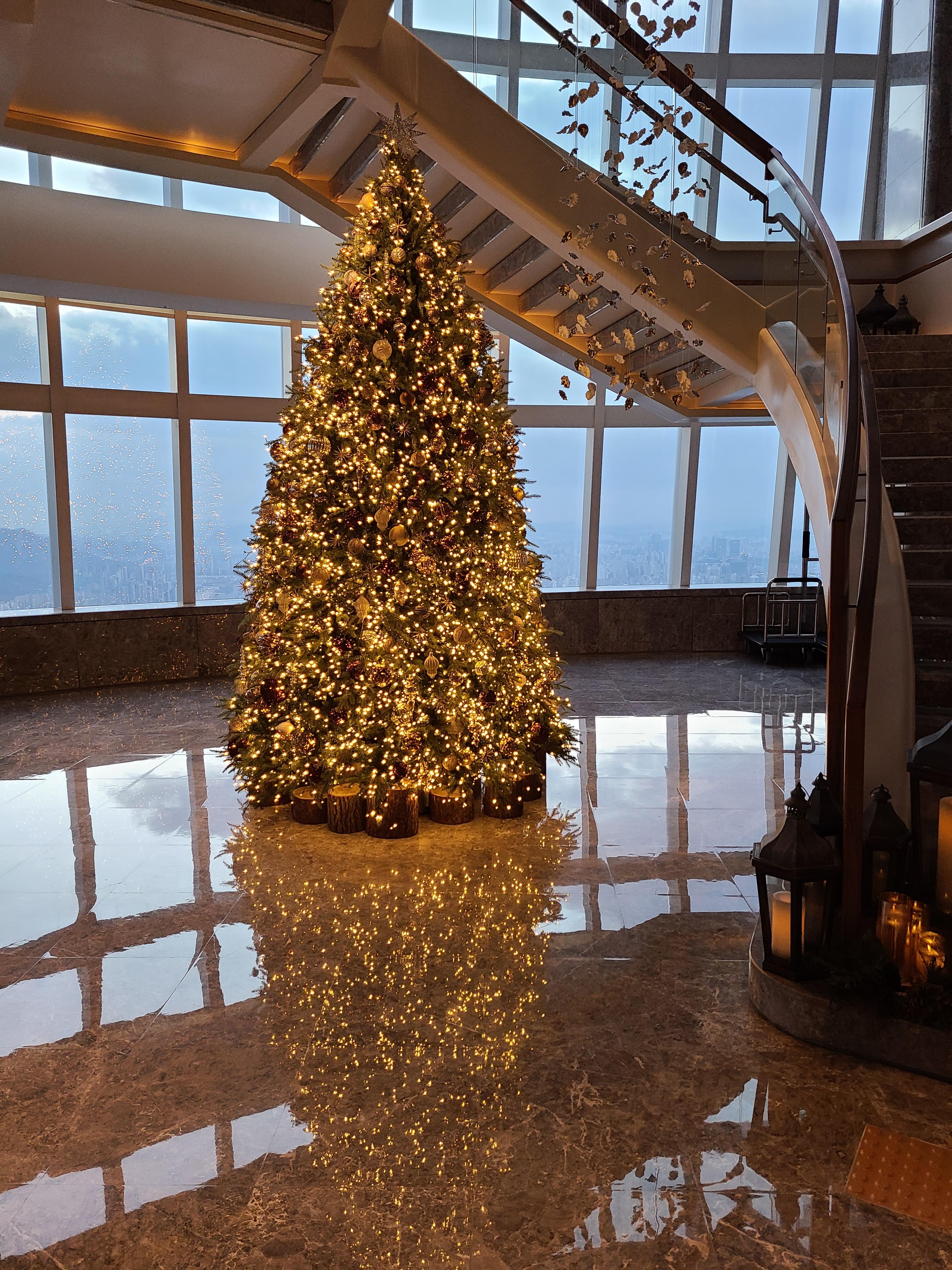 로비를 지나면서 사람이 별로 없길래 다시 한번 구경하면서 사진을 찍어봤습니다. 트리가 있는 계단의 경우 스테이 인증샷으로 유명한 스팟인데 애인이 안찍겠다하여 조형물만 찍었어요. 바깥이 살짝 어두워진 로비는 조명으로 인해 또 다른 분위기를 보여줬습니다. 이런 데서 살고 싶드아..