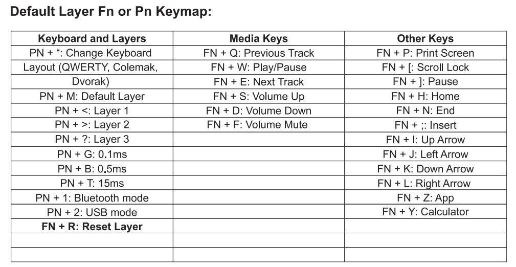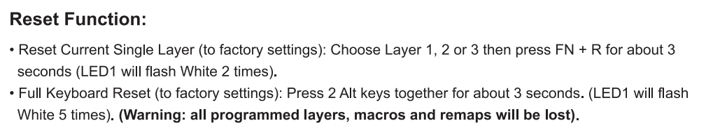 - 모든 레이어 초기화(공장초기화): 좌우 알트키를 동시에 3초간 누르기(LED1 흰색이 5번 깜빡임)