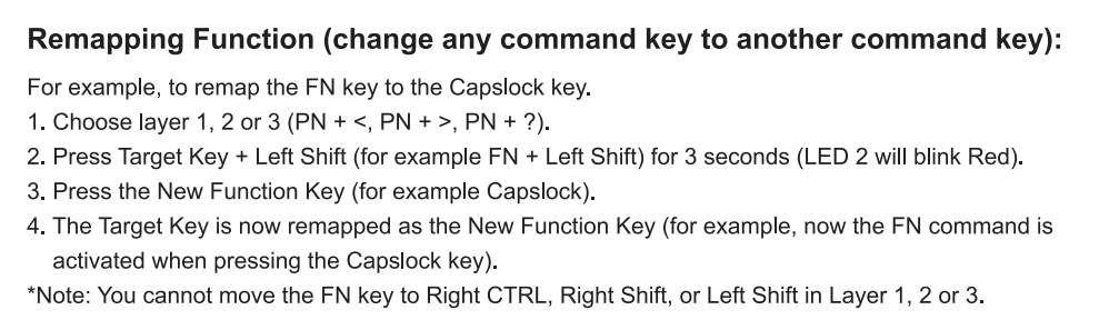 - 바꾸고자 하는 펑션키 + 왼쪽 쉬프트키 3초간 누르기(LED2 빨간색으로 깜빡임)
