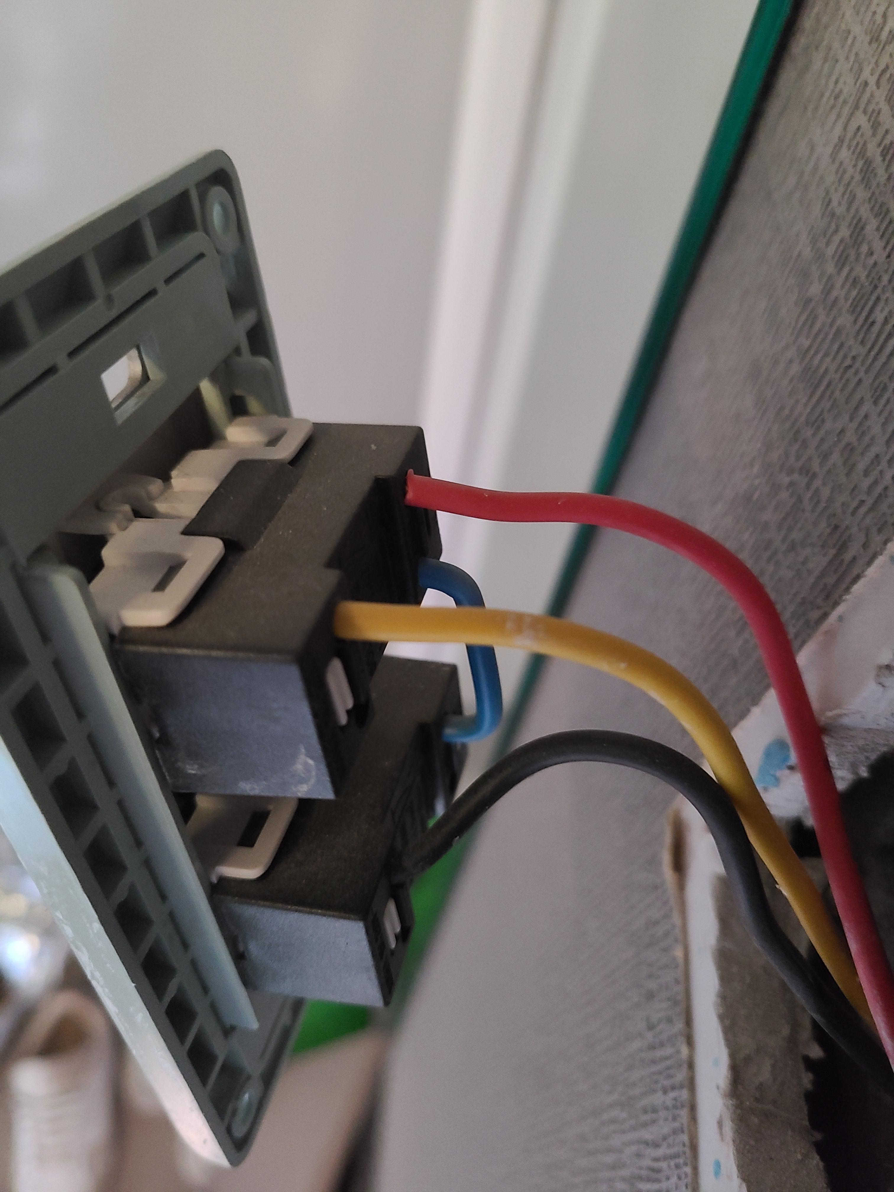 저희 집 기준으로 빨간선이 핫선이고 노랑이는 조명, 검정은 환풍기로 이어지네요.