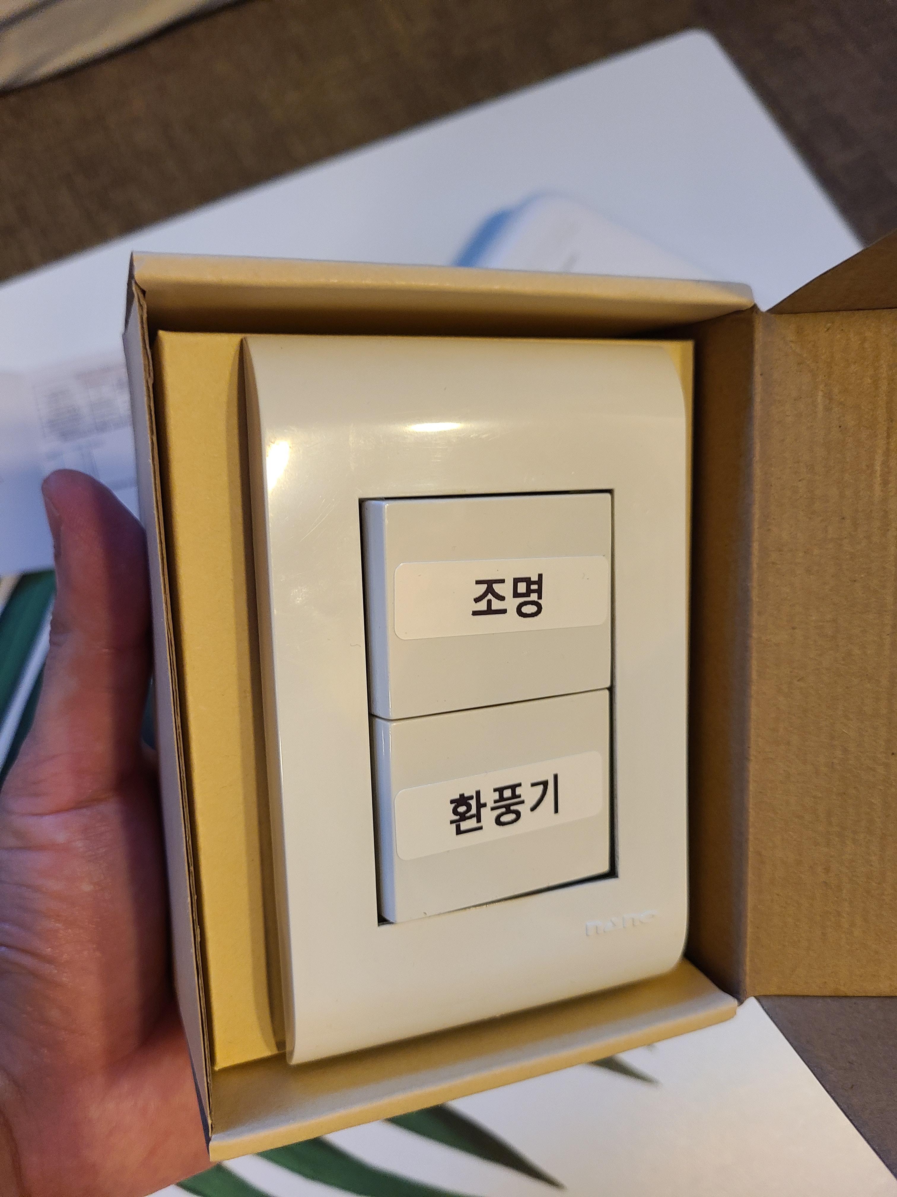 상자를 열어보니 바로 벽스위치가 보이네요. 인터넷으로 보는 것보다 실물(?)이 훨씬 이쁘네요 싼마이 느낌도 안 납니다.