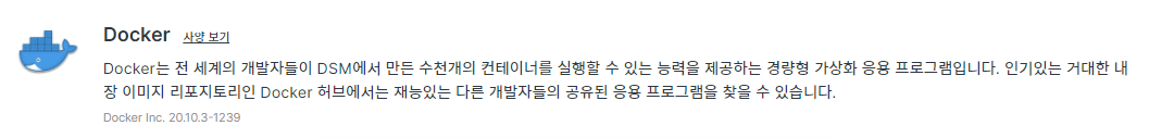 간단한 게 설명하면 도커란 개인 나스에서 조그만 프로그램? 서버? 를 운영한다고 보시면 됩니다.
