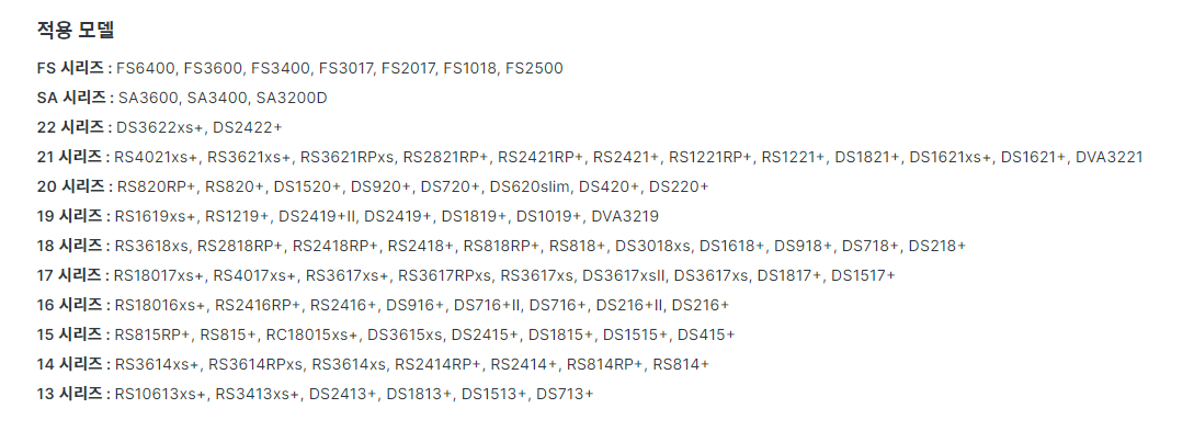 - 몇 년도 모델: 해당 나스에 언제적 모델인지 보여줍니다.