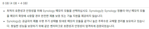 하드 구매 전에 반드시 시놀로지 공홈에서 레이드 계산하고 알맞은 용량 구매하시길 바랍니다.